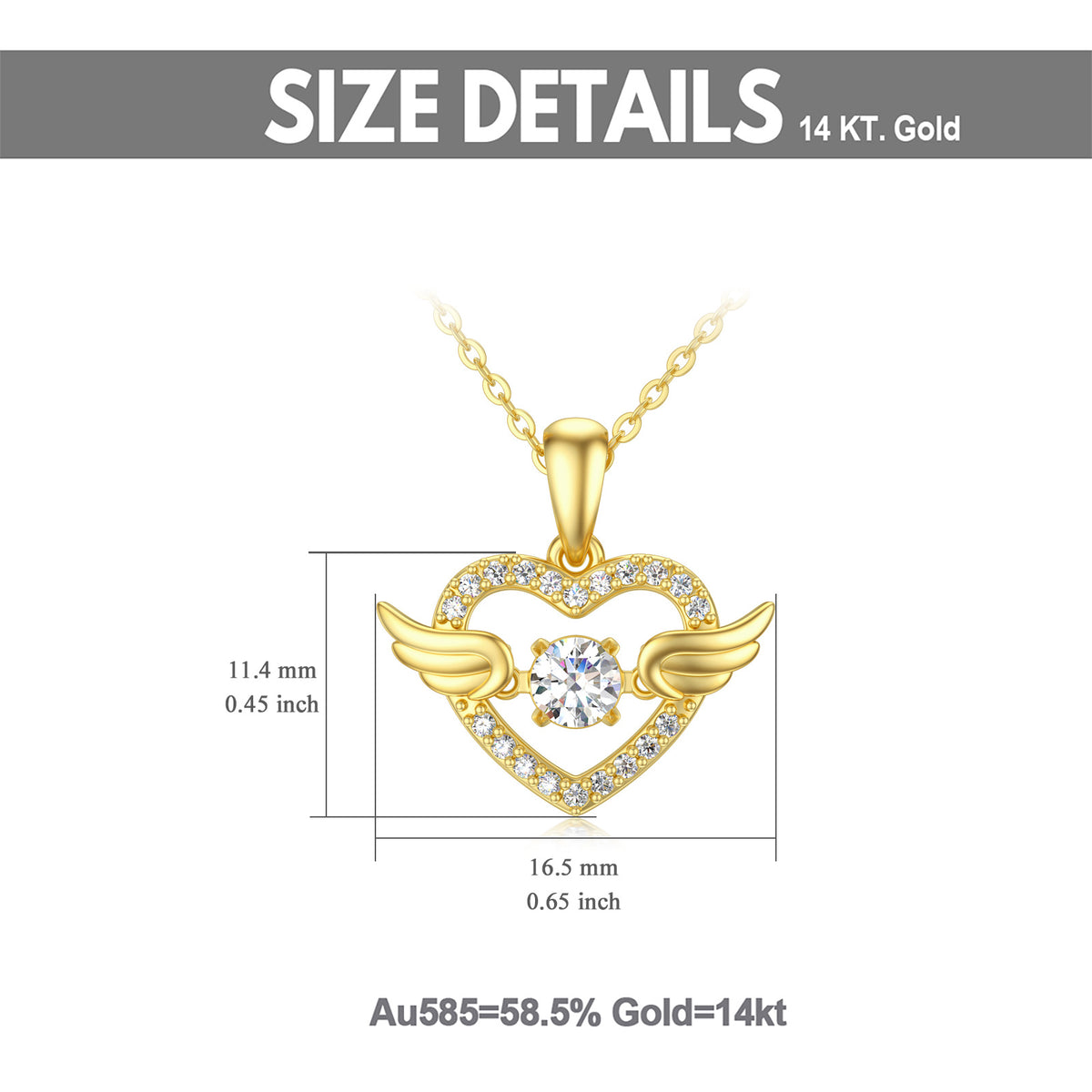 14K gold; Cubic Zirconia; angel wing and heart motif pendant; includes chain.