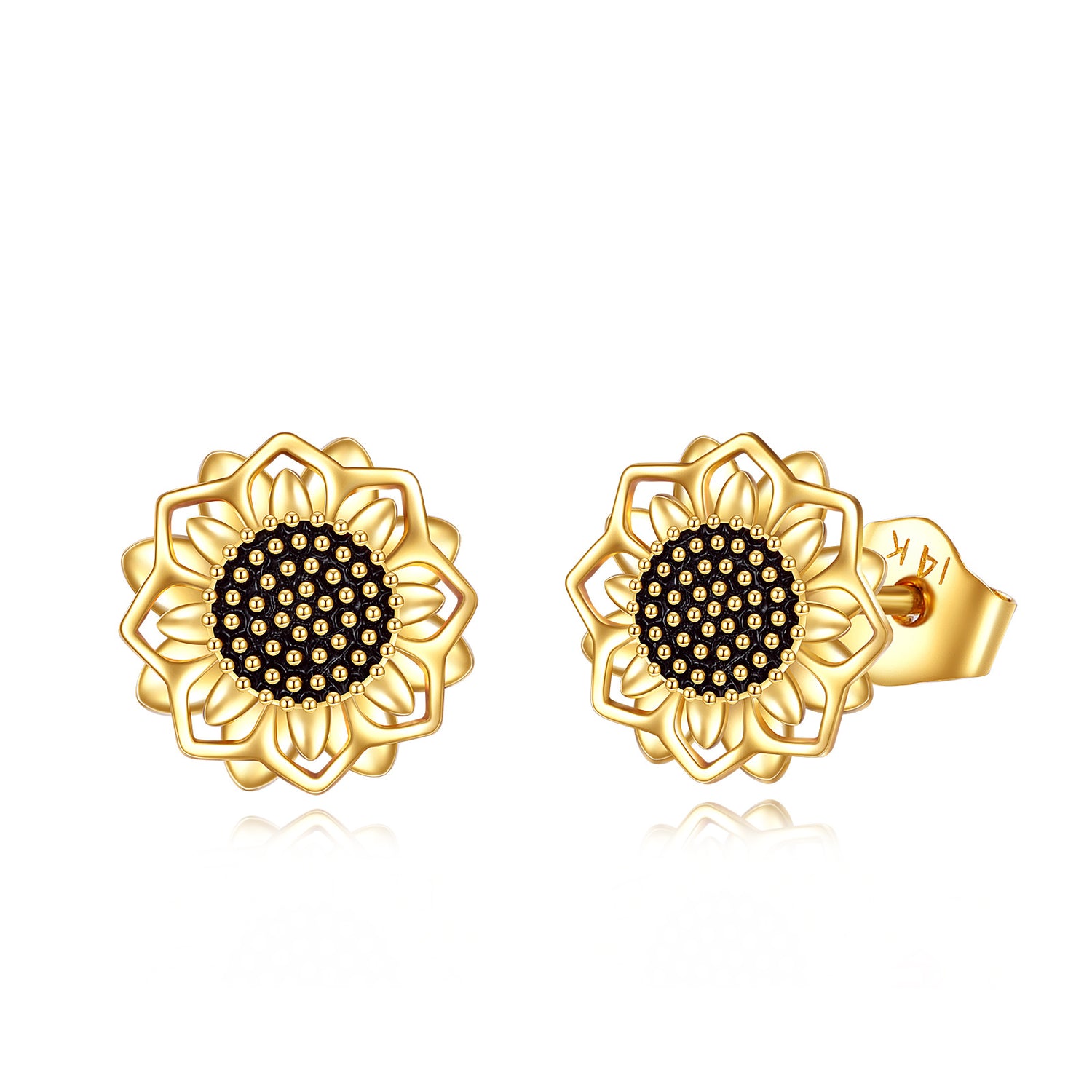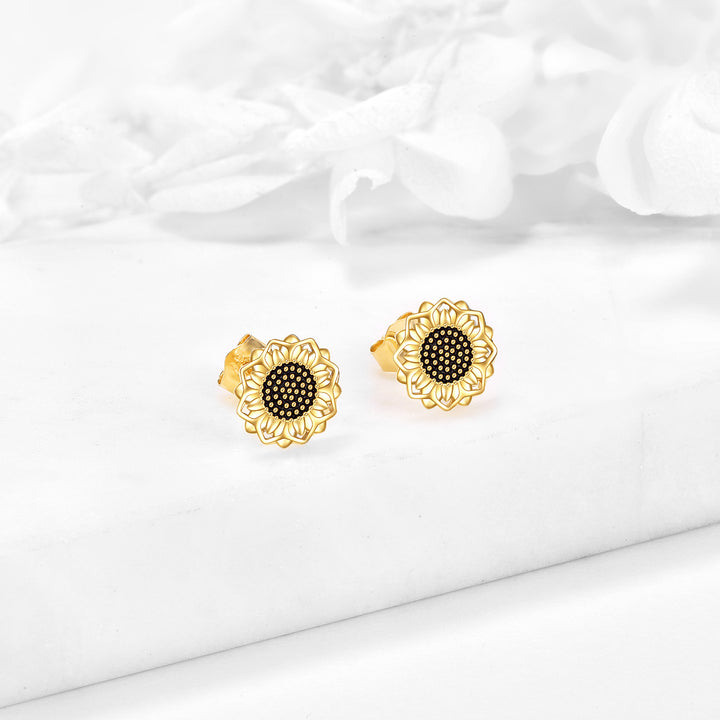 14K Gold Sunflower Stud Earrings