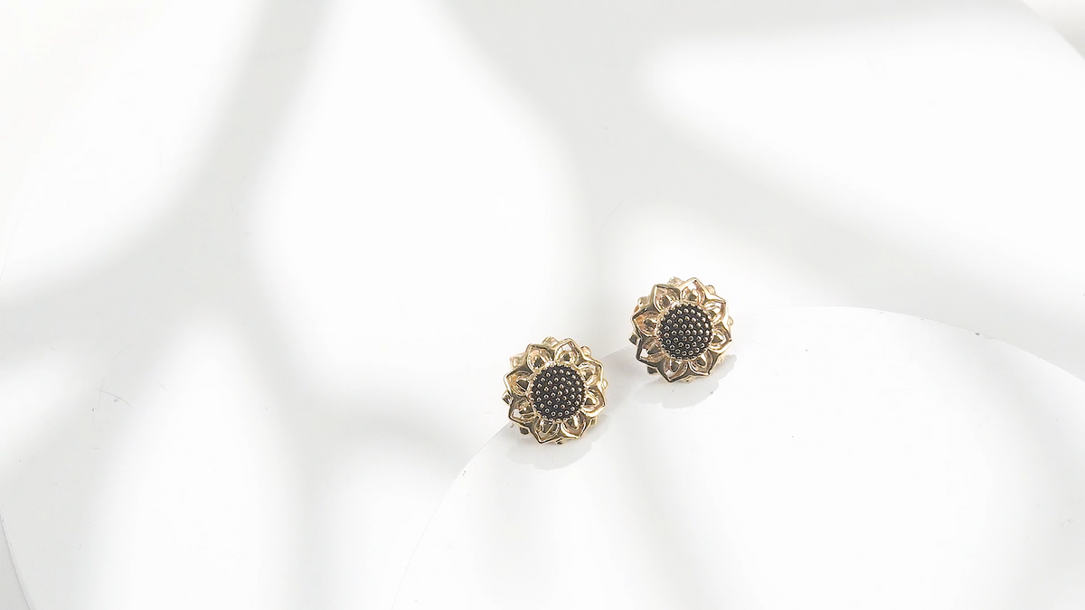 These stone-free Stud Earrings are crafted from Premium 14K Gold, featuring intricate Sunflower motifs.