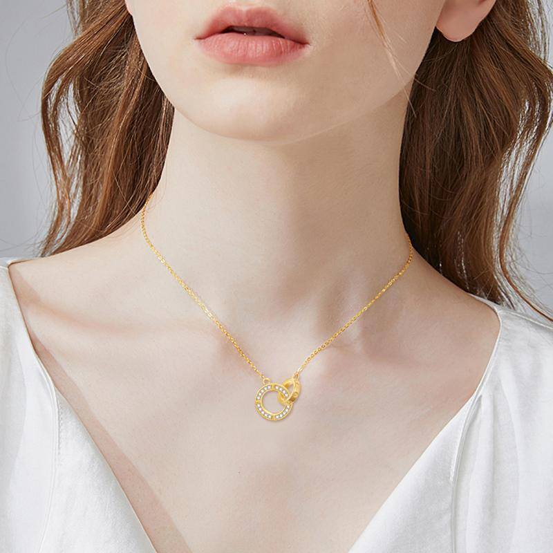 This 14K Gold Cubic Zirconia Generation Ring Pendant Necklace by YFN is an exquisite collection of luxury and sophistication for women. Meticulously crafted from high-quality 14K Gold, the pieces feature intricate pendant designs and stunning Generation Rings, all embedded with dazzling Cubic Zirconia for brilliant, diamond-like sparkle, perfect for celebrating milestones or everyday elegance.