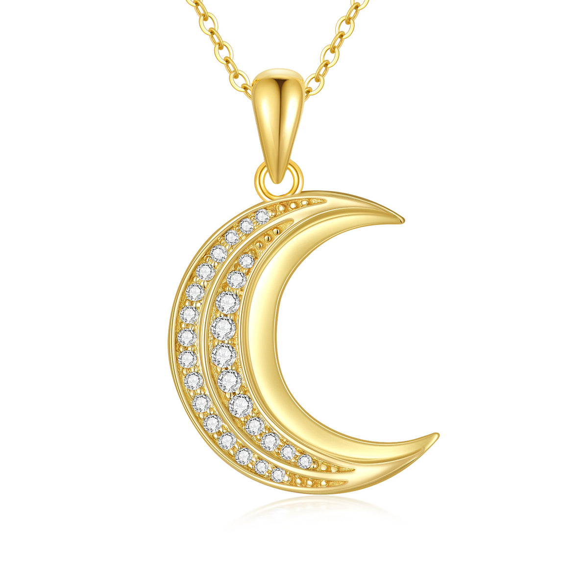 This 14K Gold Moissanite Moon Pendant Necklace by YFN is an exquisite moon pendant necklace for women, capturing celestial elegance. Crafted from 14K Gold, the pendant showcases a brilliant Moissanite gem that rivals the radiance of diamonds, offering lasting quality and sophisticated appeal for any occasion.