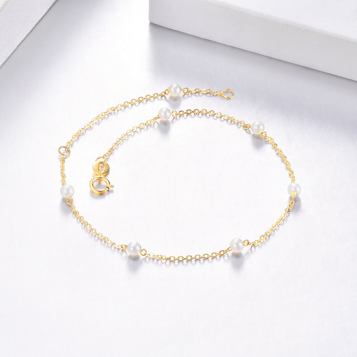 This 14K Gold Pearl Charm Bracelet by YFN is a luxurious and stylish piece for women. Expertly crafted with a radiant 14K gold chain, this charm bracelet is paired with a stunning pearl Charm, exuding both sophistication and simplicity for any occasion.