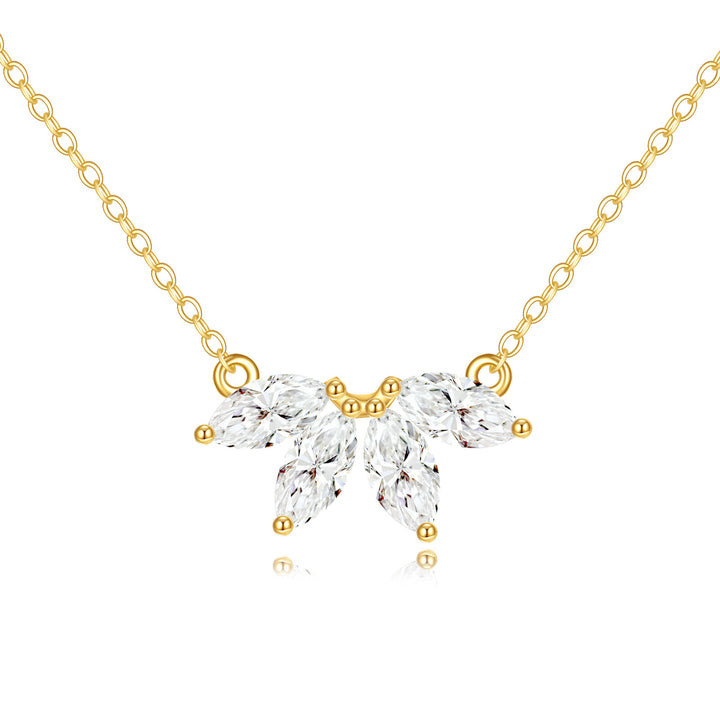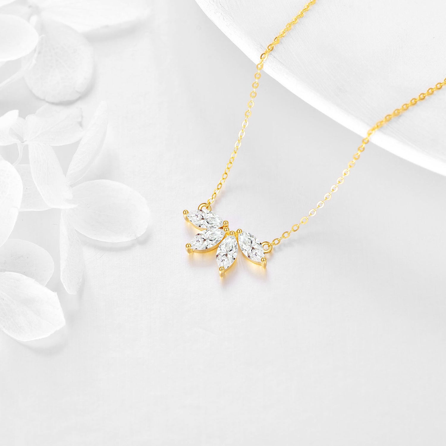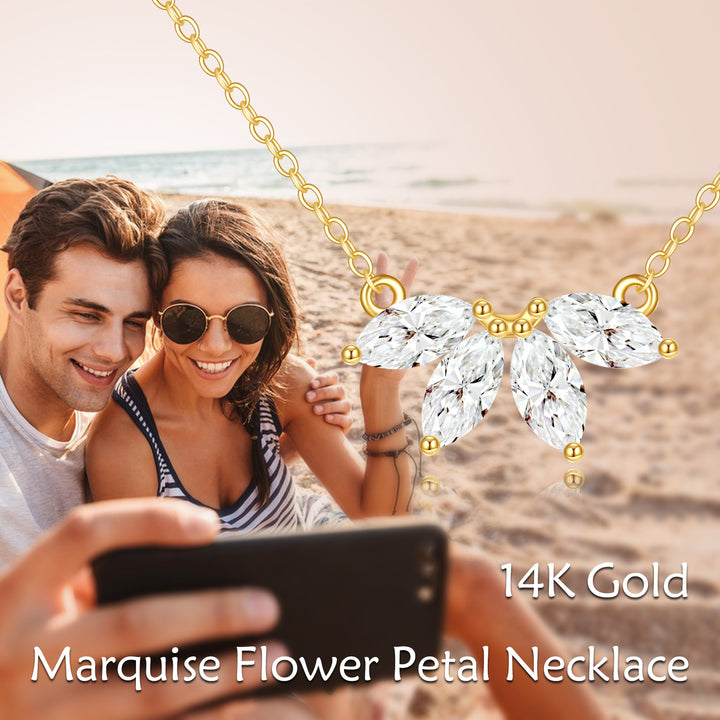 14K Gold Marquise Shaped Zircon Marquis Flower Pendant Necklace