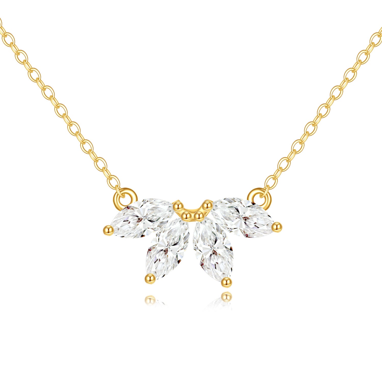 14K gold; clear zircon stones; marquise-shaped flower pendant; chain necklace.
