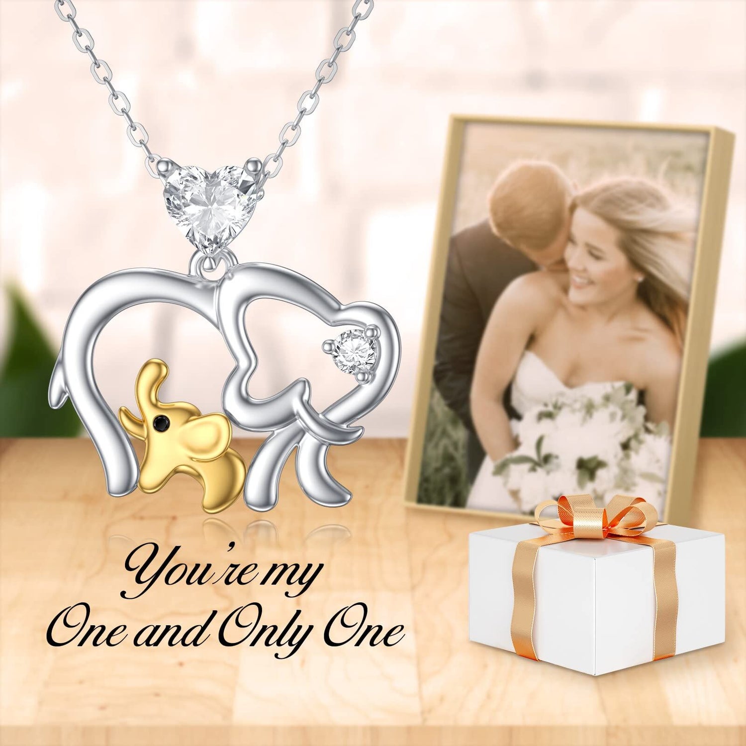 Crafted from premium 14K White and Yellow Gold, this Elephant Pendant Necklace is set with high-quality Cubic Zirconia stones.