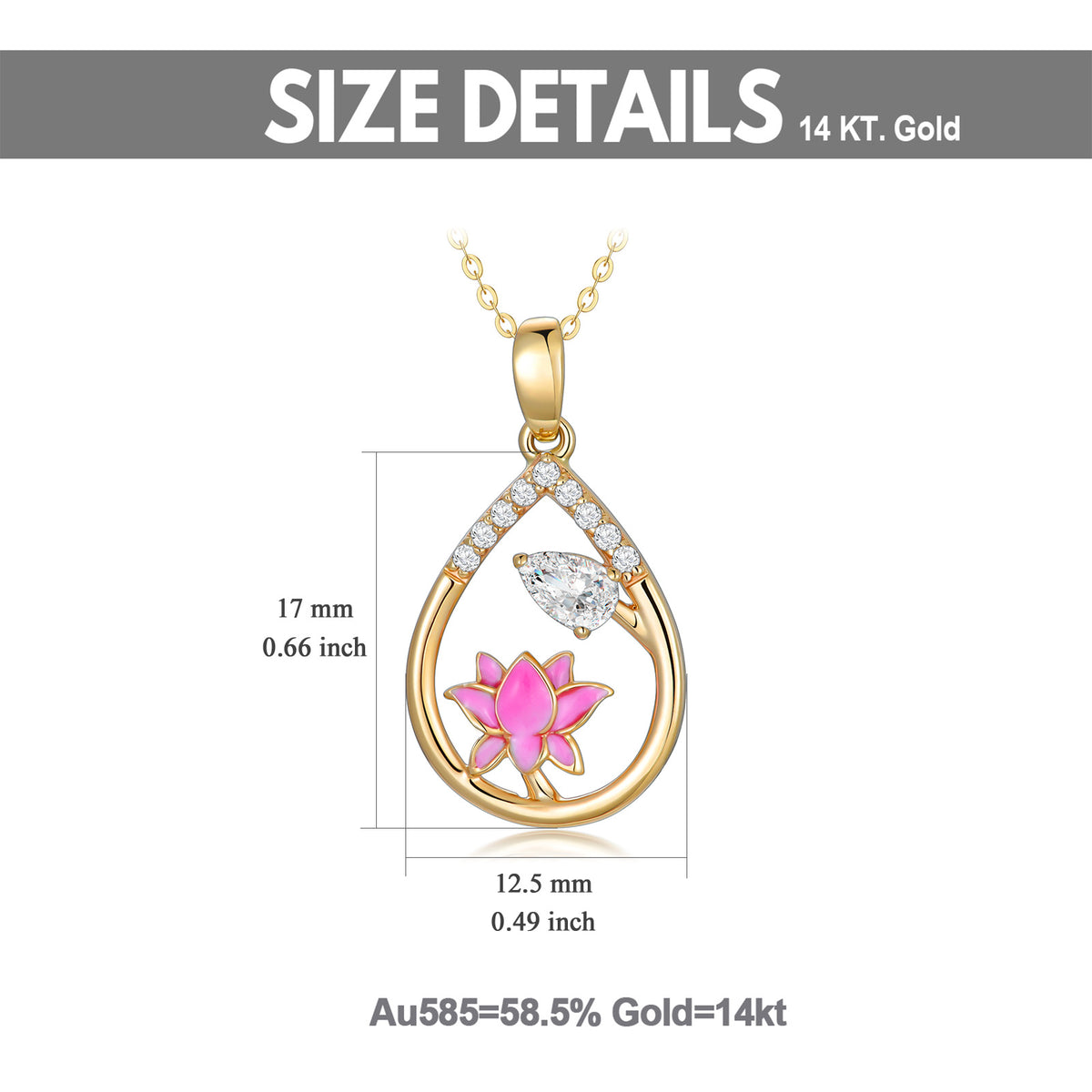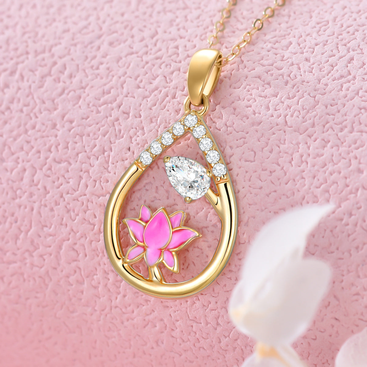 14K Gold Pear Shaped Cubic Zirconia Lotus Pendant Necklace