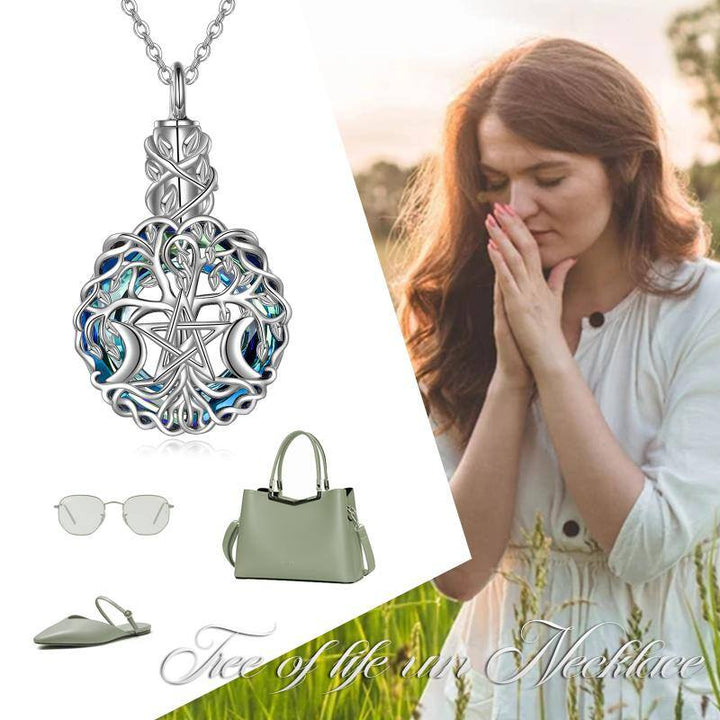 Sterling Silver Crystal Tree Of Life Moon Goddess Urn Necklace for Ashes