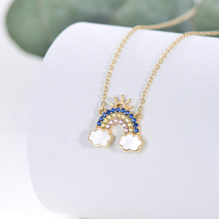 10K Gold Cubic Zirconia Rainbow & Sun Pendant Necklace