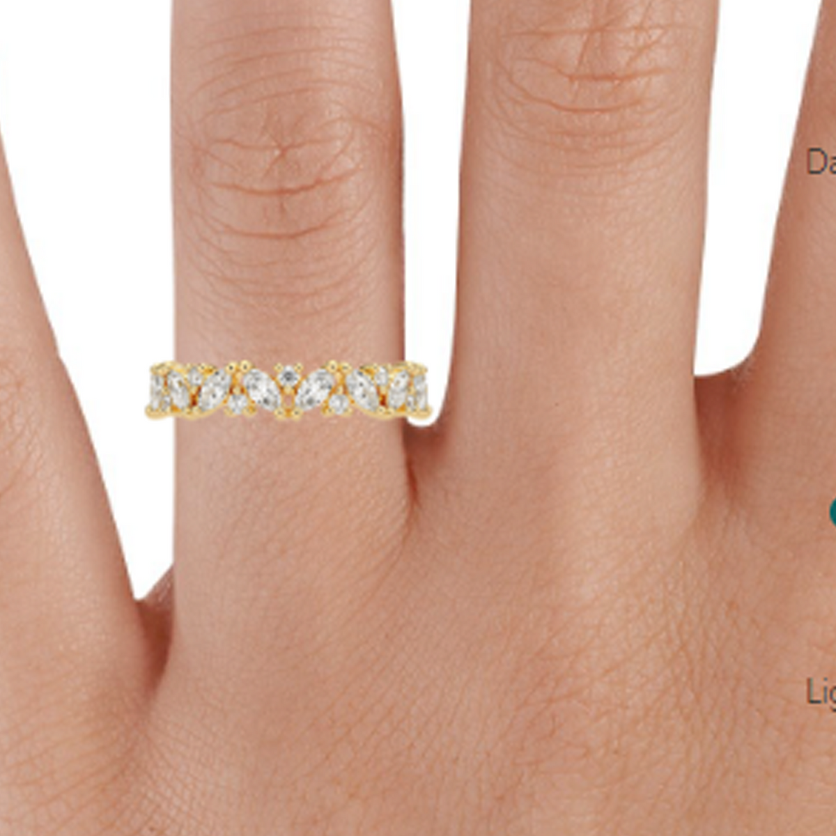 This 18K Gold 1 ctw Lab-created Diamond Wedding Ring by YFN combines round and marquise cuts for a vintage-inspired sparkle. Custom engraving adds sentimental value.