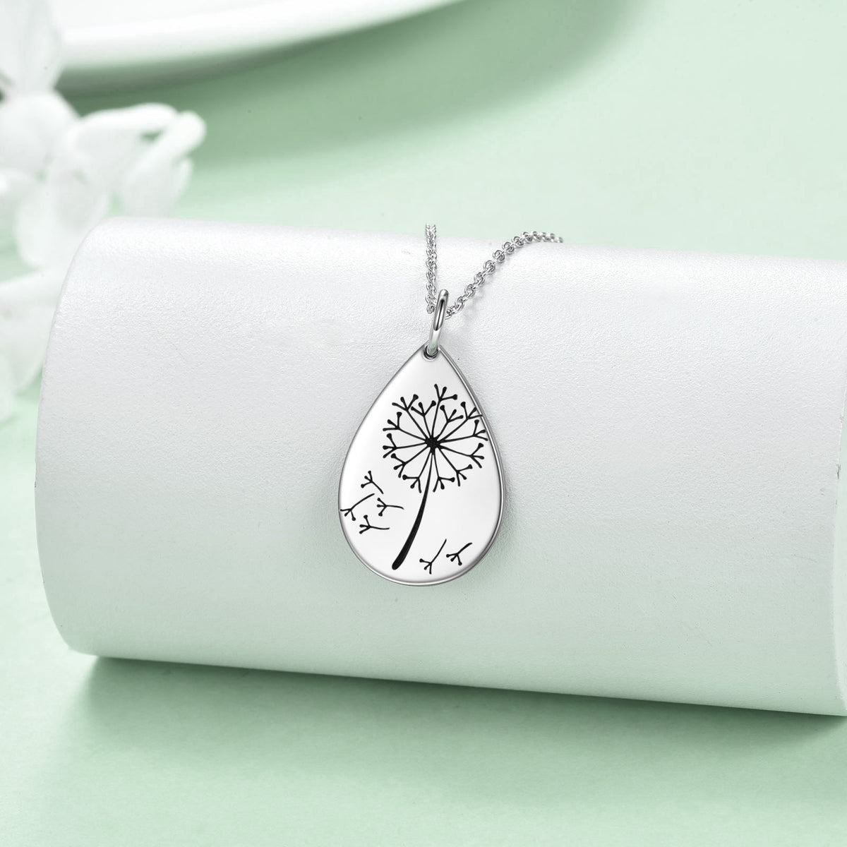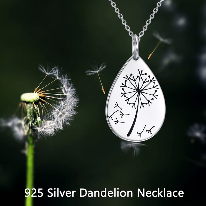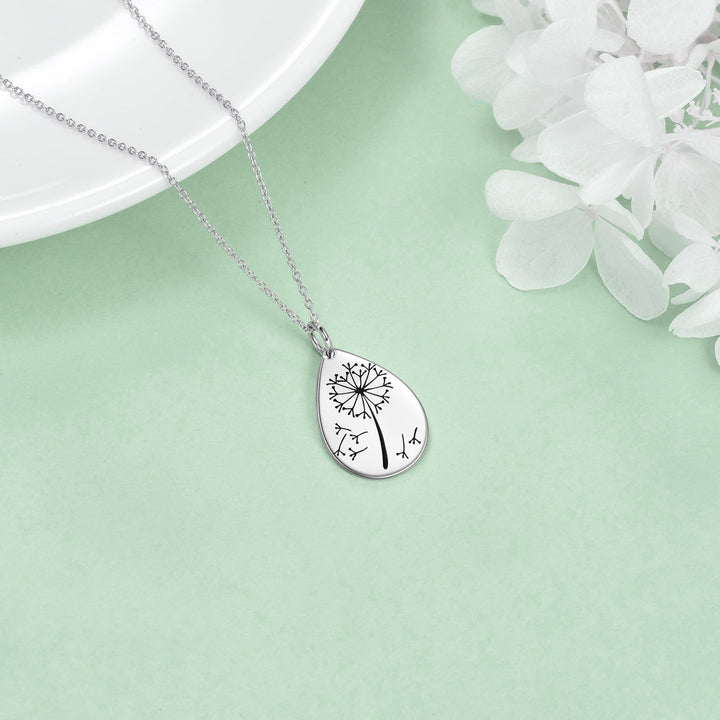 Crafted from high-quality Sterling Silver and White Gold Plated, this stone-free Pendant Necklace features a delicate drop-shaped design with a Dandelion motif.