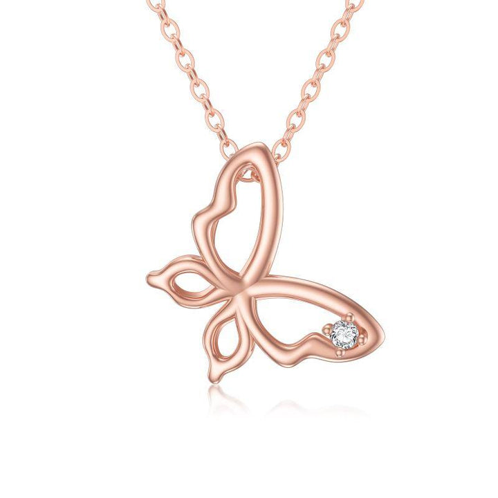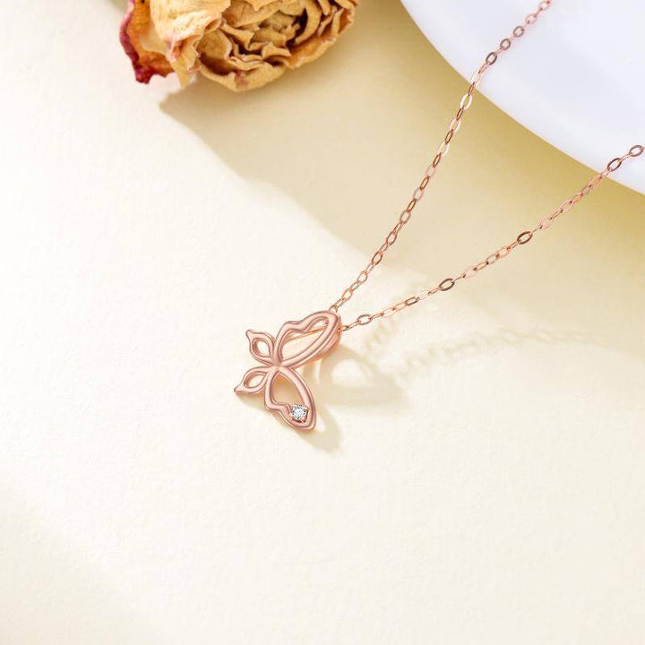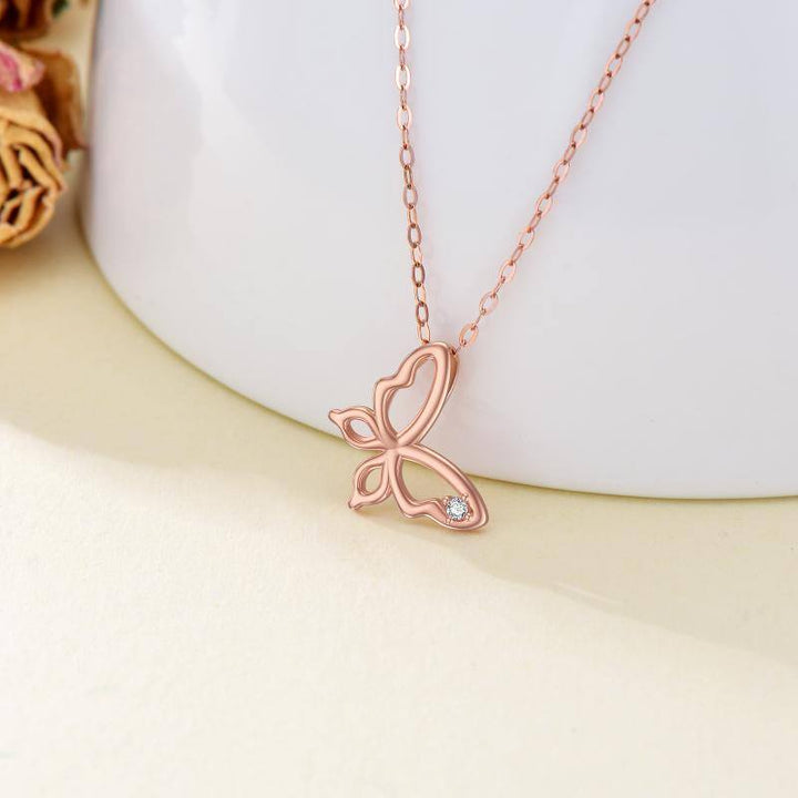 14K Rose Gold Moissanite Butterfly Pendant Necklace