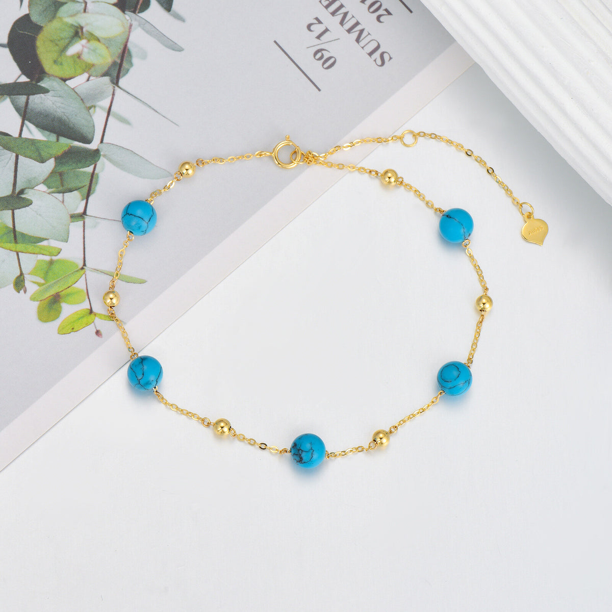 This 14K Turquoise Crystal Beads Bracelet by YFN offers a refreshing touch of elegance and charm, tailored exclusively for women who love to shine. This stunning bracelet is crafted with high-quality Crystal Beads that radiate captivating sparkle. The vibrant Turquoise Accents bring a sense of calm and balance, perfectly complementing the elegant design. With a flexible band for a comfortable fit, this versatile piece is ideal for dressing up or adding a playful flair to your everyday look.