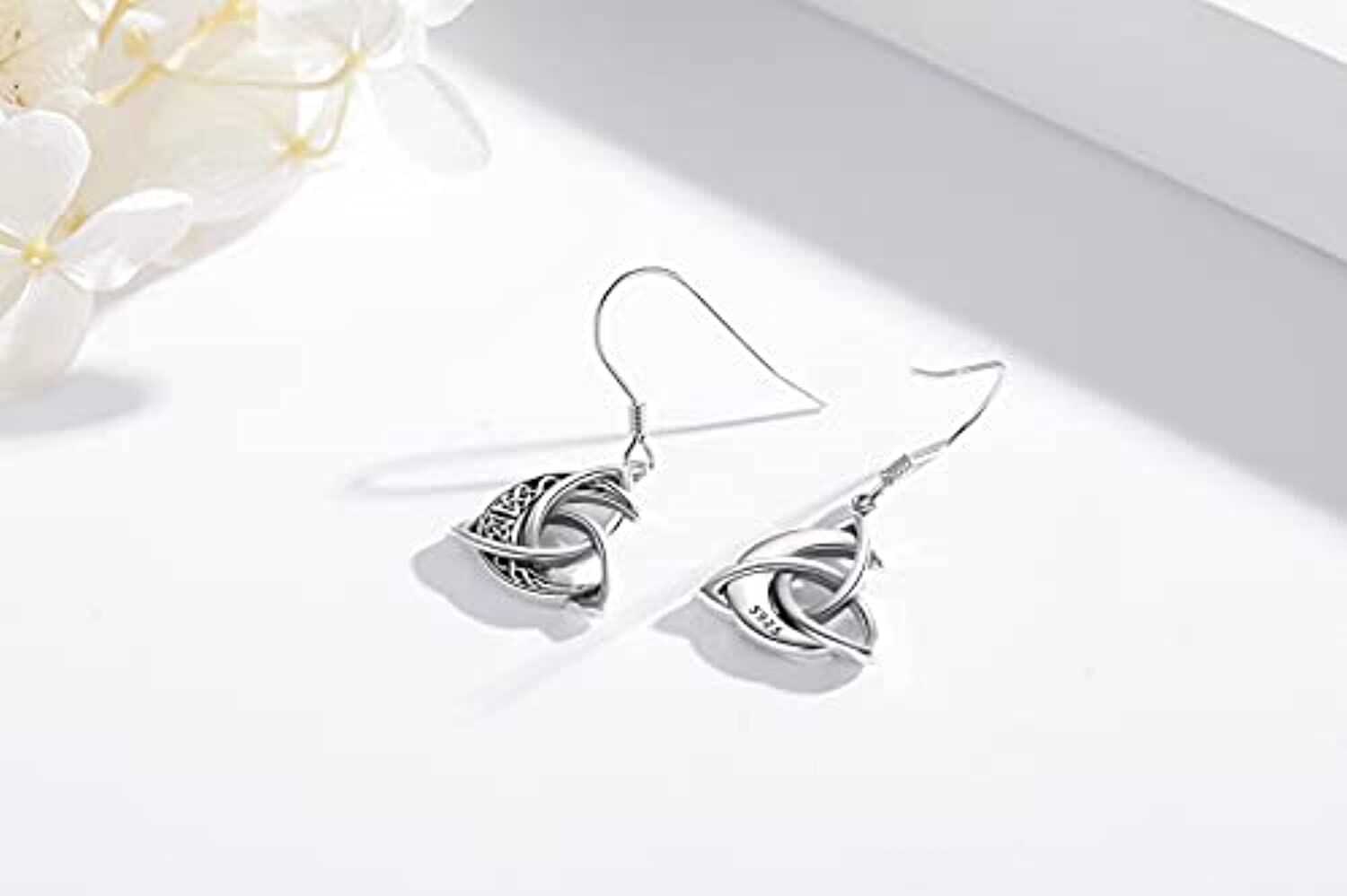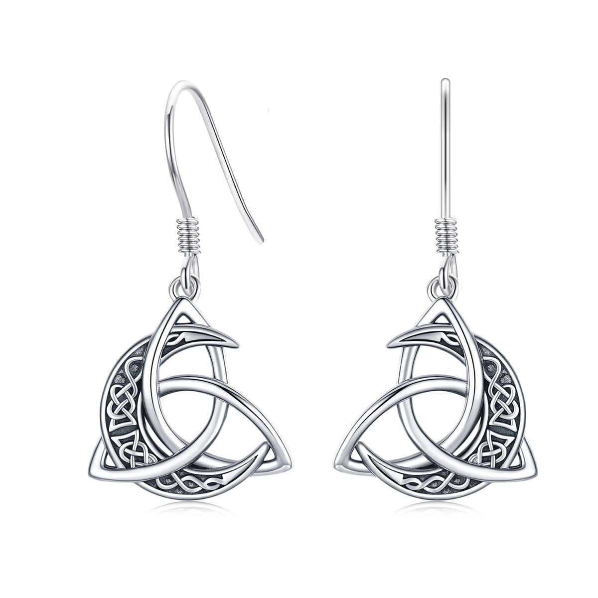 Sterling Silver Celtic Knot & Moon Drop Earrings