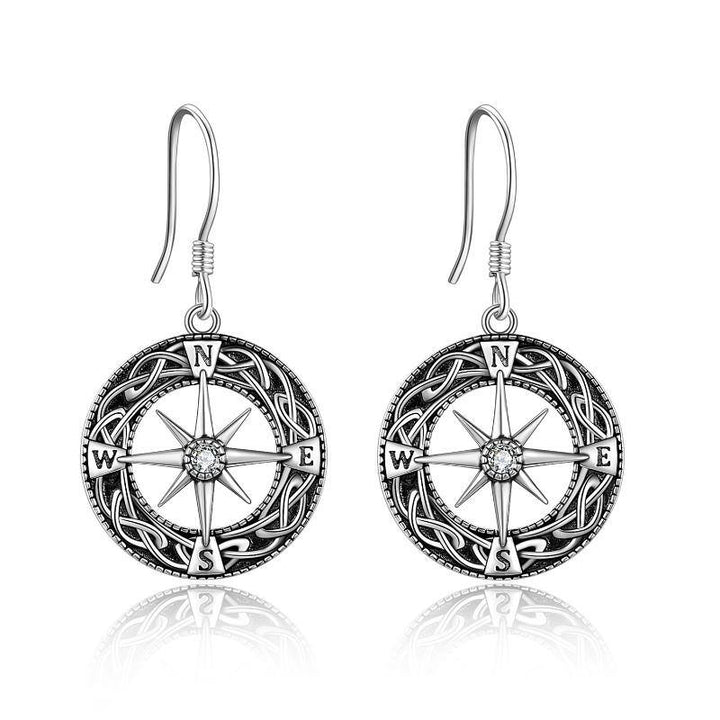 Sterling silver; retro silver finish; compass drop pendants; ear wires.