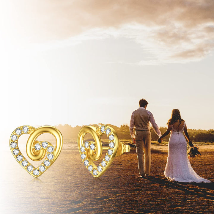 14K Gold Cubic Zirconia Heart & Infinity Symbol Stud Earrings