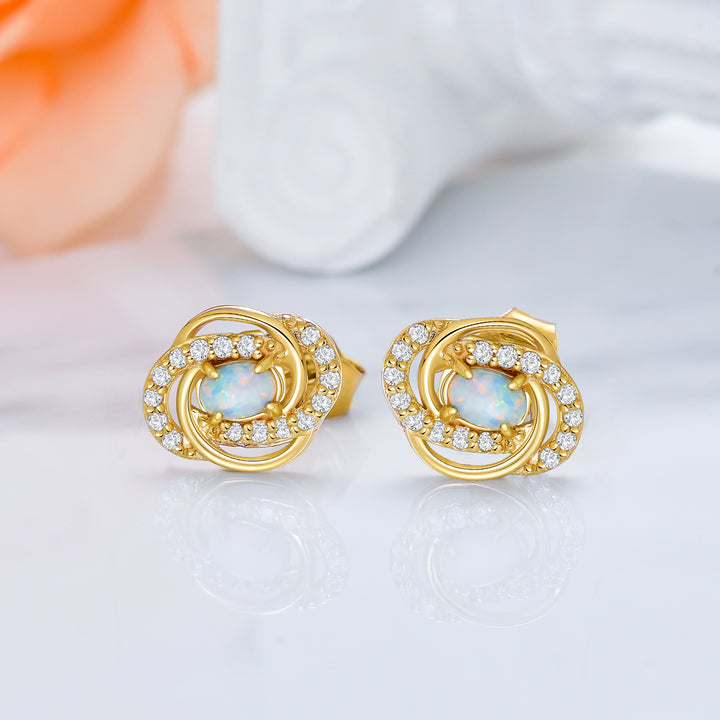 Crafted from high-quality 14K Gold, these Stud Earrings showcase vibrant Opal gemstones.
