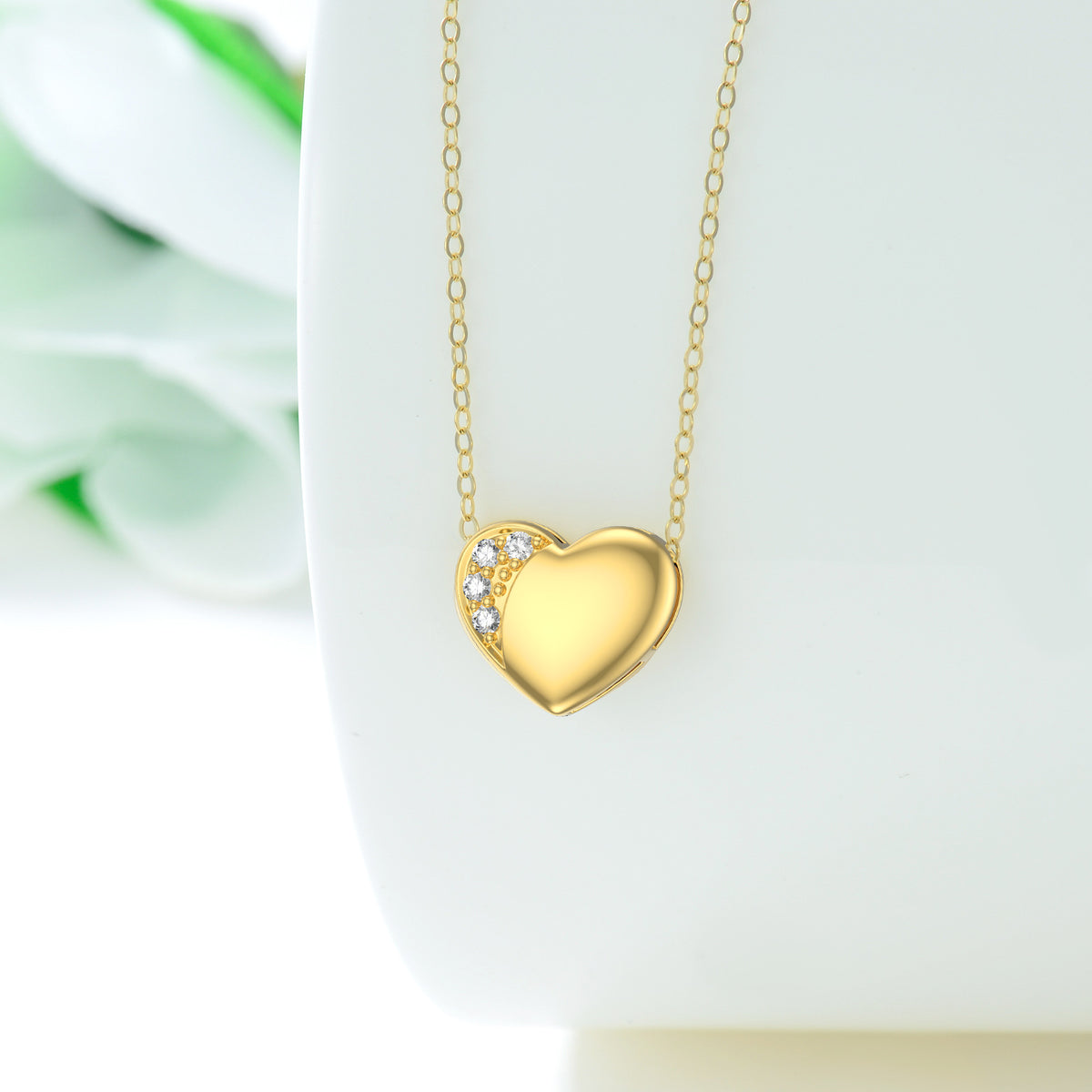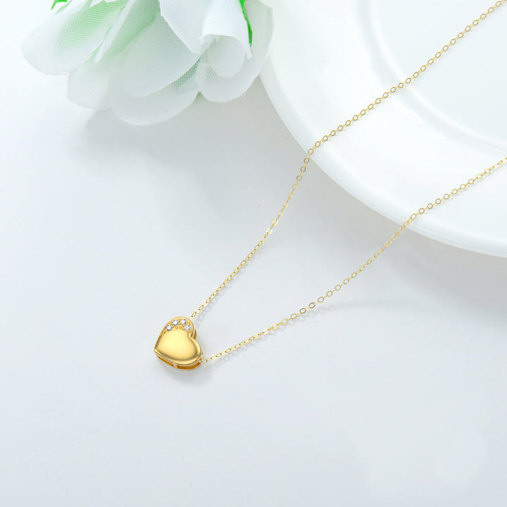 14K Gold Cubic Zirconia Heart Pendant Necklace