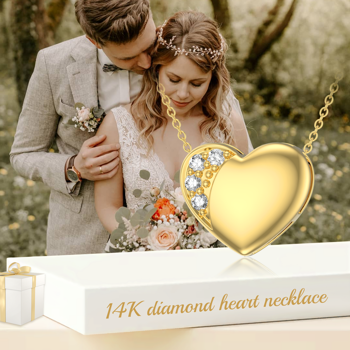 This 14K Gold Cubic Zirconia Heart Pendant Necklace by YFN exudes elegance and romance. Crafted from luxurious 14K gold, this exquisite pendant necklace showcases a stunning heart-shaped Cubic Zirconia that sparkles like a diamond, adding a touch of glamour and timeless sophistication for women.