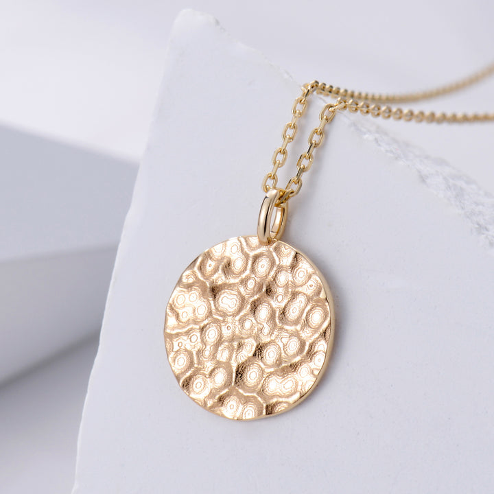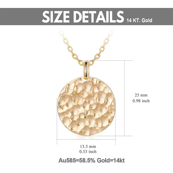 14K Gold Full Moon Open Circle Hammered Pendant Necklace
