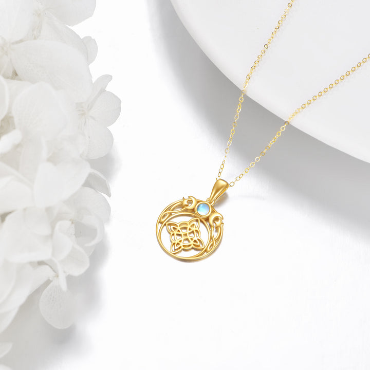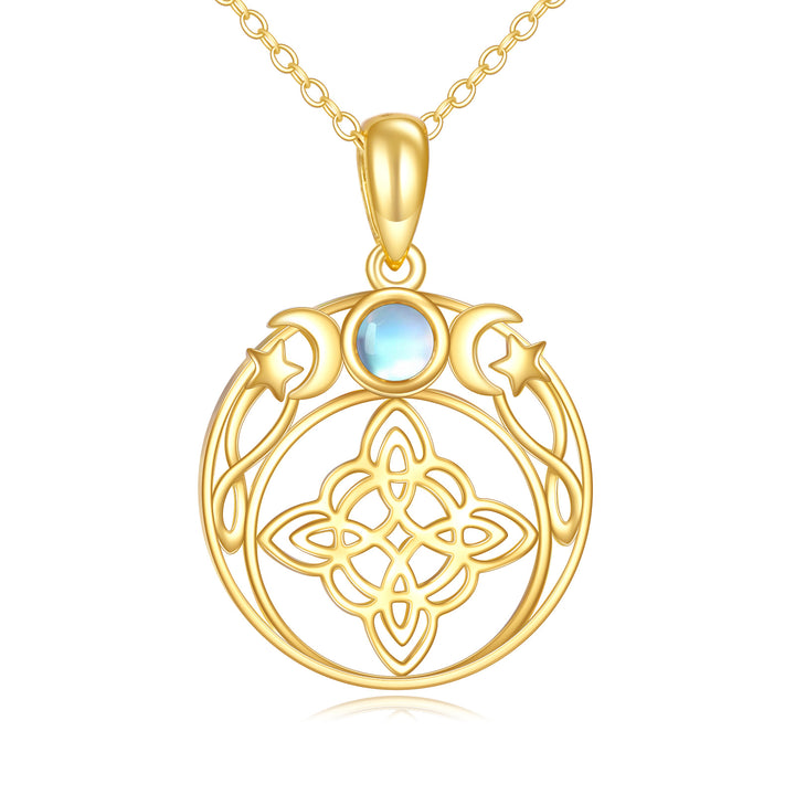 Crafted from high-quality 14K Gold, this Pendant Necklace features a mesmerizing Moonstone centerpiece and a Witch-Inspired Design.