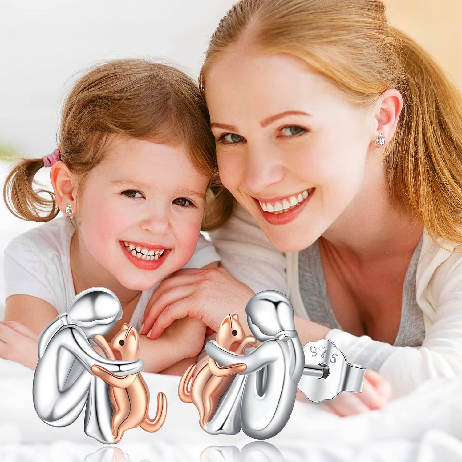 Sterling silver with rose gold accents; cat motifs; stud backs; no stones.