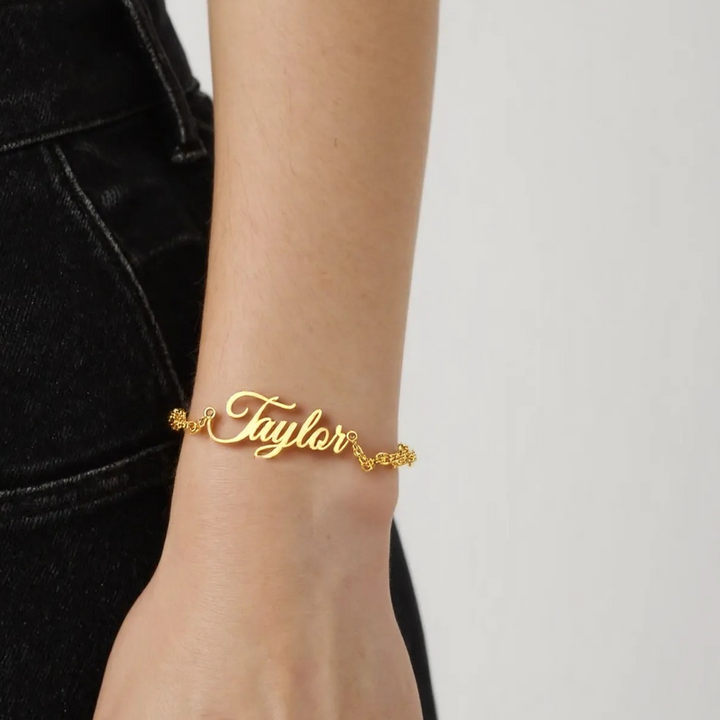 14K Gold Personalized Classic Name Charm Bracelet