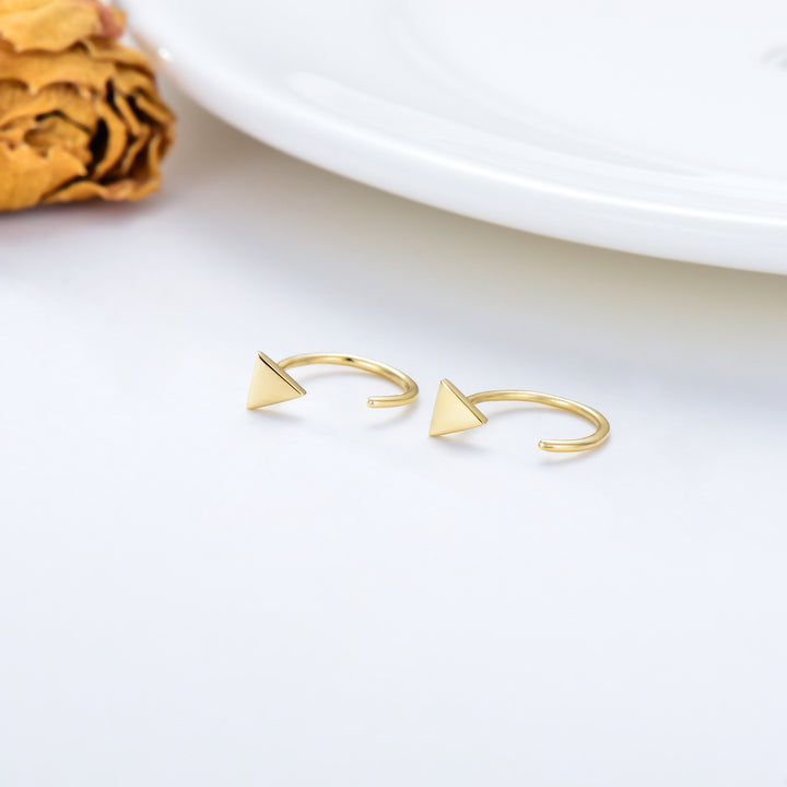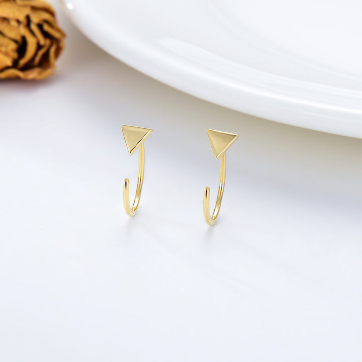 Crafted from Solid 14K Yellow Gold, these earrings feature a cute Triangle Open Half Hoop design.