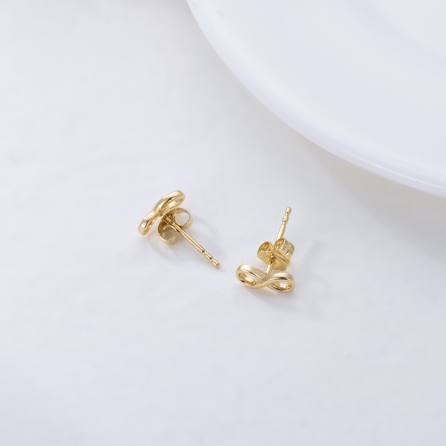 These no-stone Stud Earrings are crafted from 14K Gold, Featuring a Minimalist Infinity Symbol Motif.