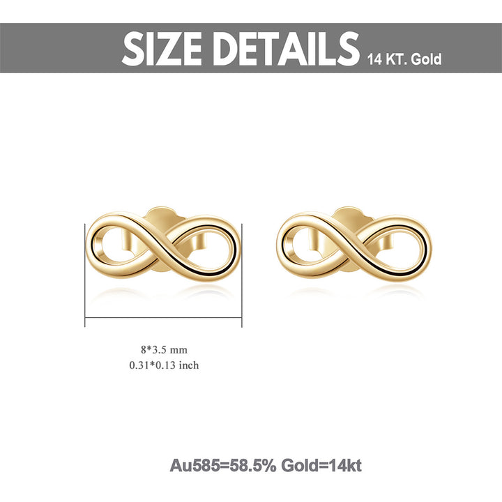 These 14K Gold Infinity Symbol Stud Earrings by YFN are a statement of timeless elegance and profound meaning for women. Crafted meticulously from radiant 14K Gold, these stud earrings feature a minimalist yet meaningful Infinity Symbol, symbolizing eternal love and infinite possibilities. The stone-free design ensures subtle sophistication and enduring style, making them a versatile accessory perfect for gifting or personal wear on any occasion.