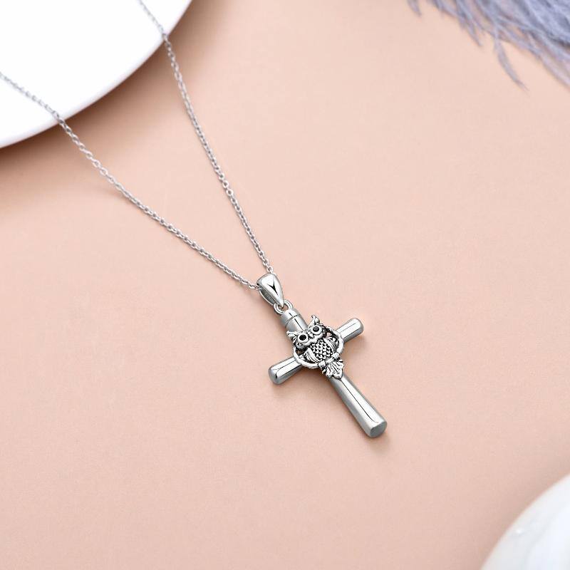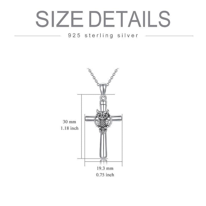 Sterling Silver Owl & Cross Urn Necklace for Ashes