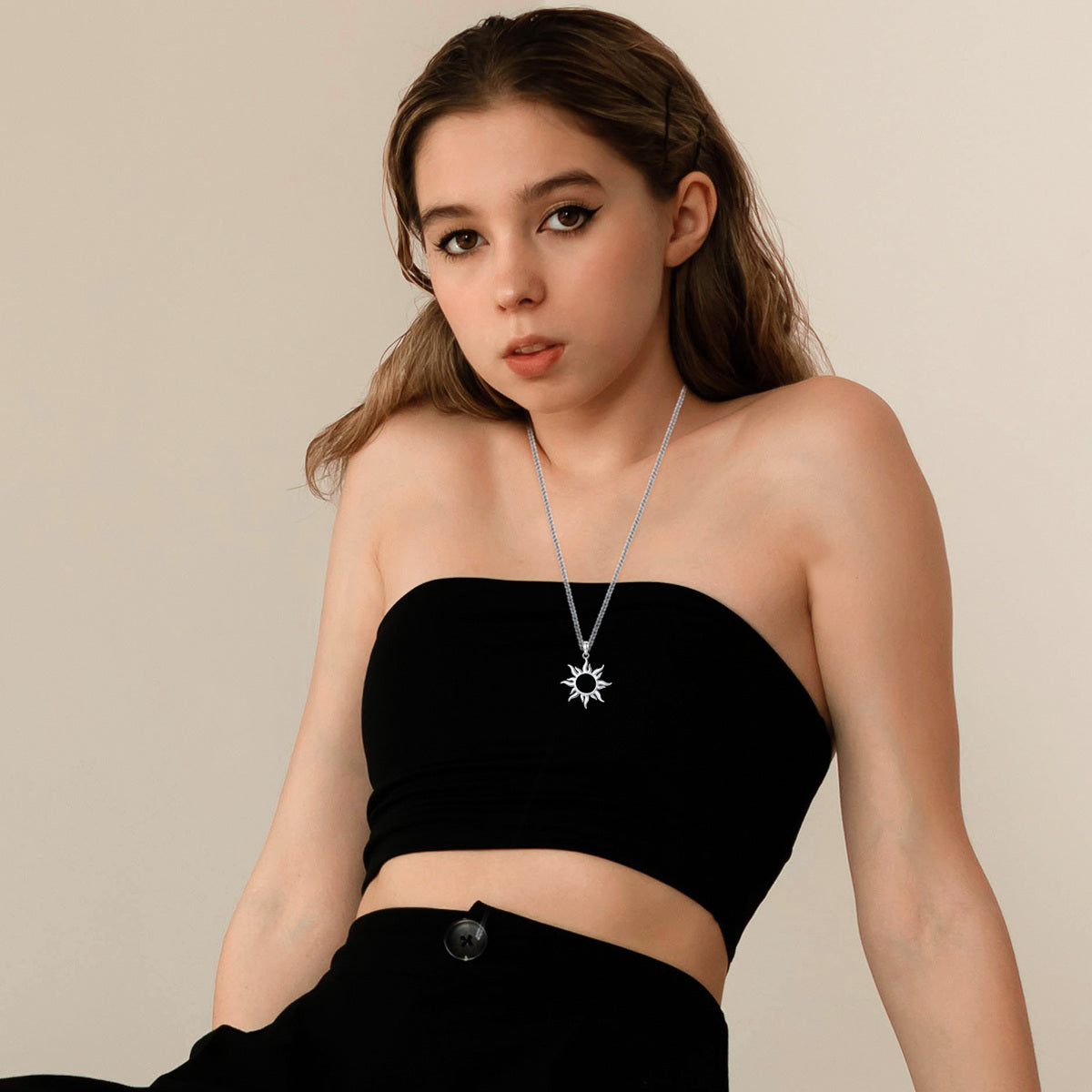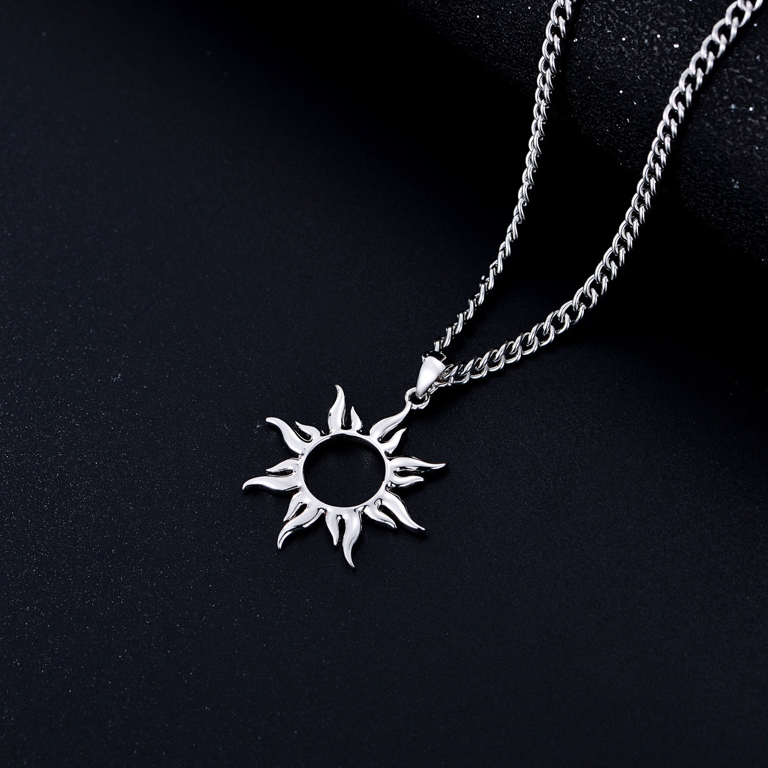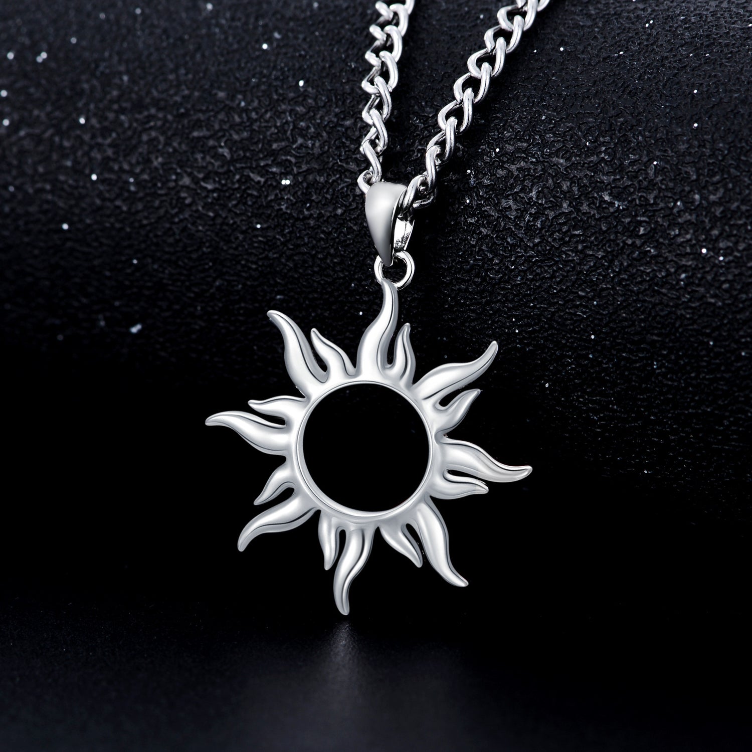 This Sun Pendant Necklace by YFN captures timeless elegance with a radiant, stone-free design. Expertly crafted from high-quality sterling silver and finished with a sophisticated white gold plating, the sun motif symbolizes vitality and positive energy. Its unisex design ensures it is a versatile accessory, perfect for gifting or personal indulgence, showcasing sophisticated charm and durable quality that complements any style.