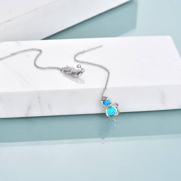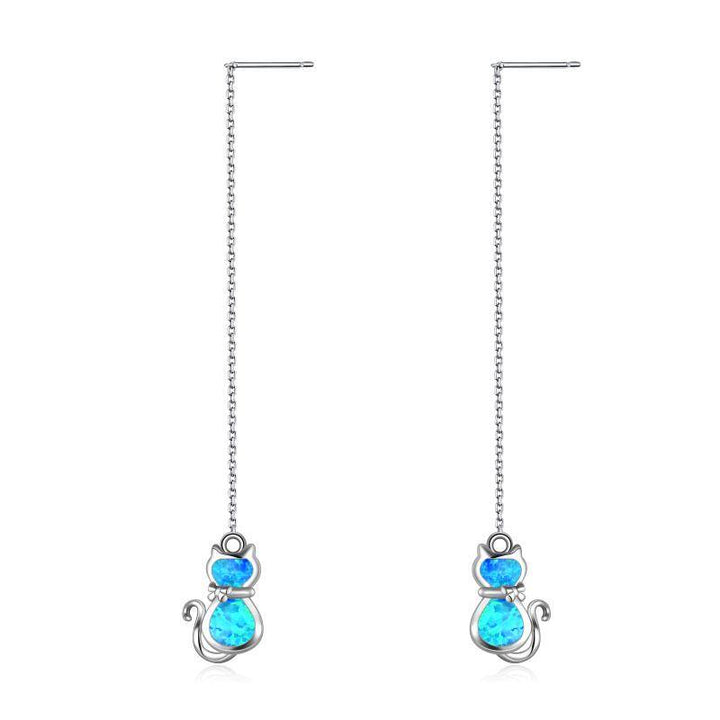 Sterling Silver Blue Opal Cat Chain Earrings Drop Earring For Women