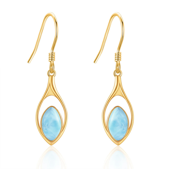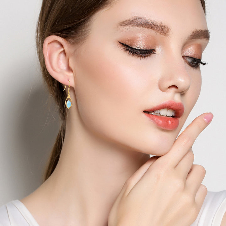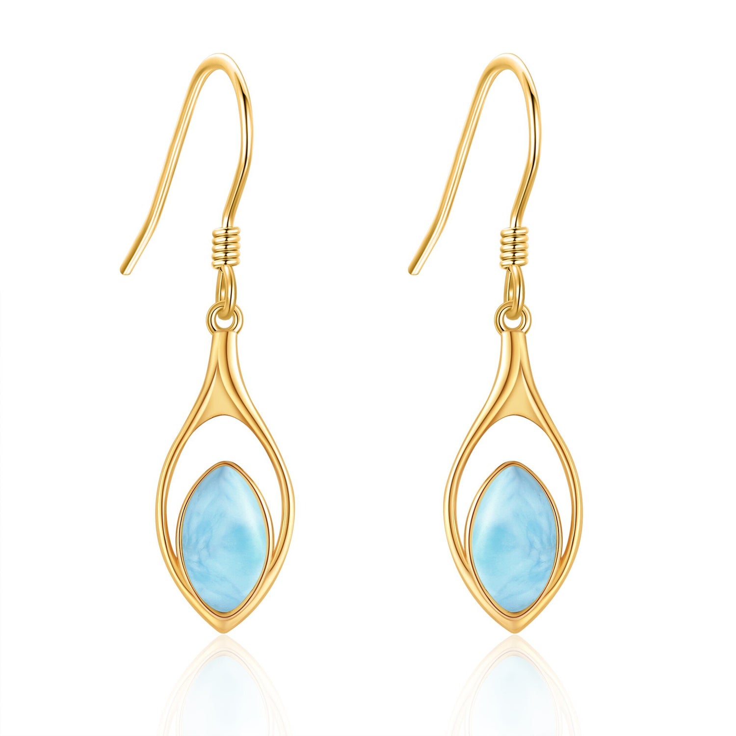 These Drop Earrings are crafted from 14K Gold, Featuring Stunning Lablagite Gemstones.