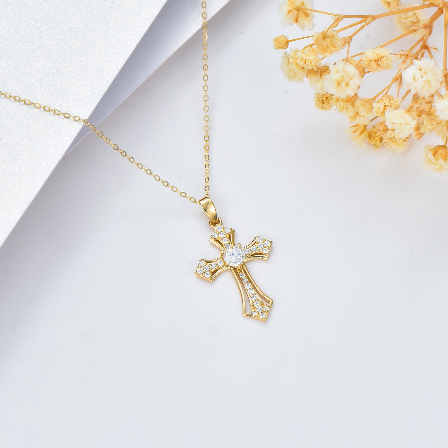 This 14K Gold Moissanite Cross Pendant Necklace by YFN is a stunning and meaningful piece for women, designed to elevate elegance and faith. Crafted with meticulous attention to detail in 14K gold, the delicate cross design is centered with a dazzling Moissanite gemstone that radiates brilliance, rivalling that of a diamond. This piece symbolizes grace and strength, combining luxury and spiritual meaning, making it an ideal, sophisticated addition for daily wear or special occasions.