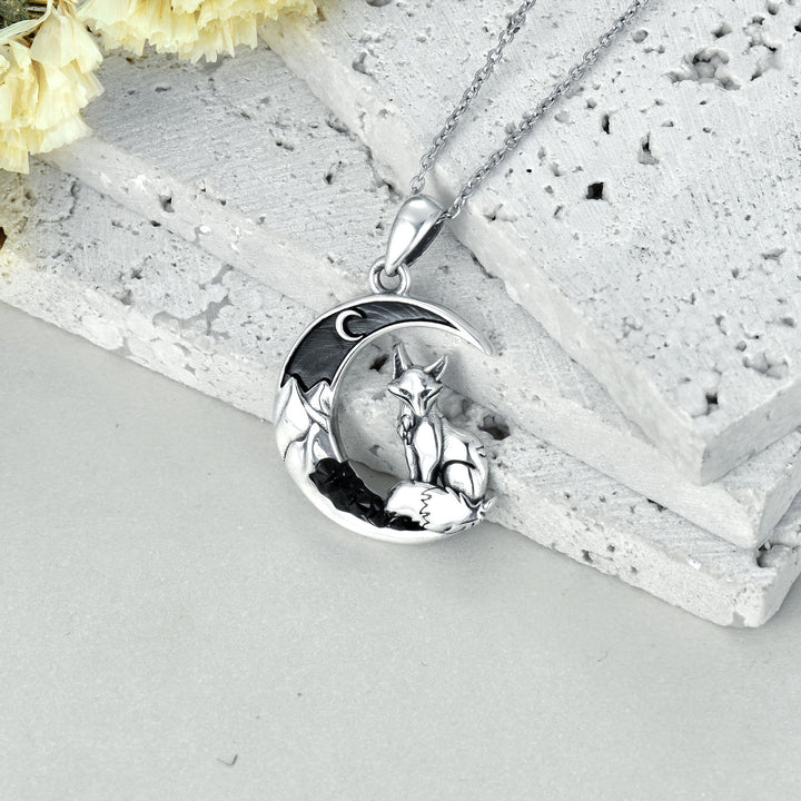 This no-stone Women's Pendant Necklace is crafted from High-Quality Sterling Silver with Retro Sterling Silver Finish, Featuring a Fox and Moon Motif.