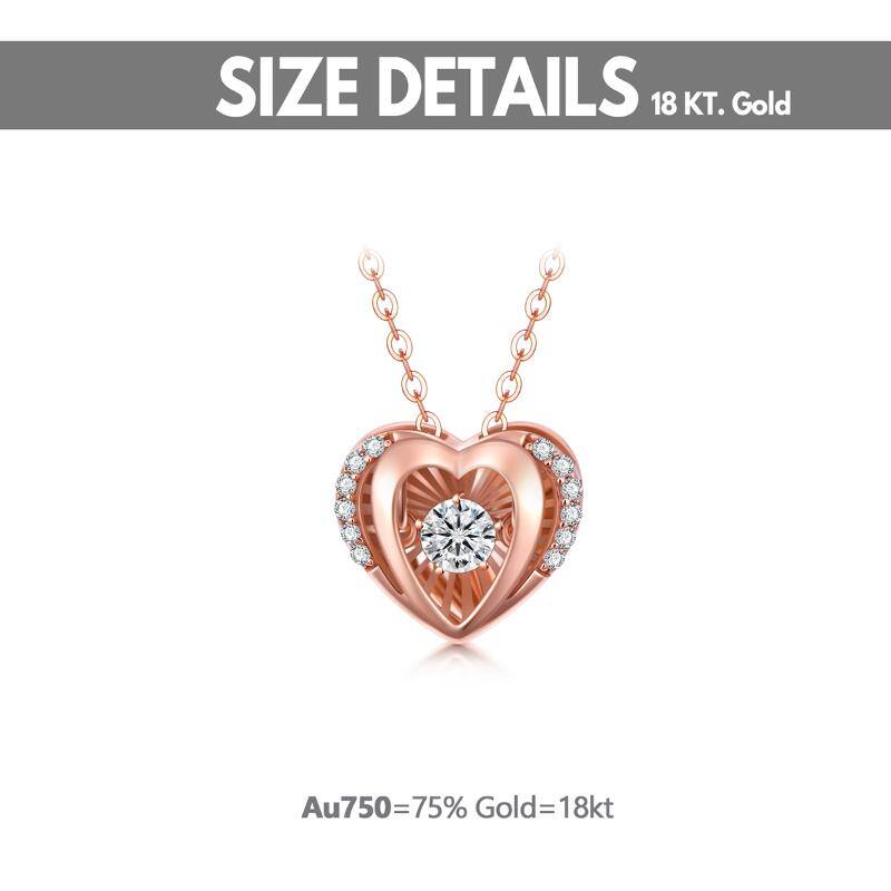 18K Rose Gold Circular Cubic Zirconia Heart With Heart Pendant Necklace For Women