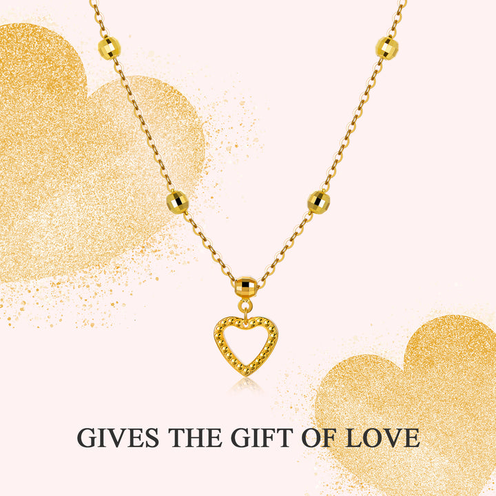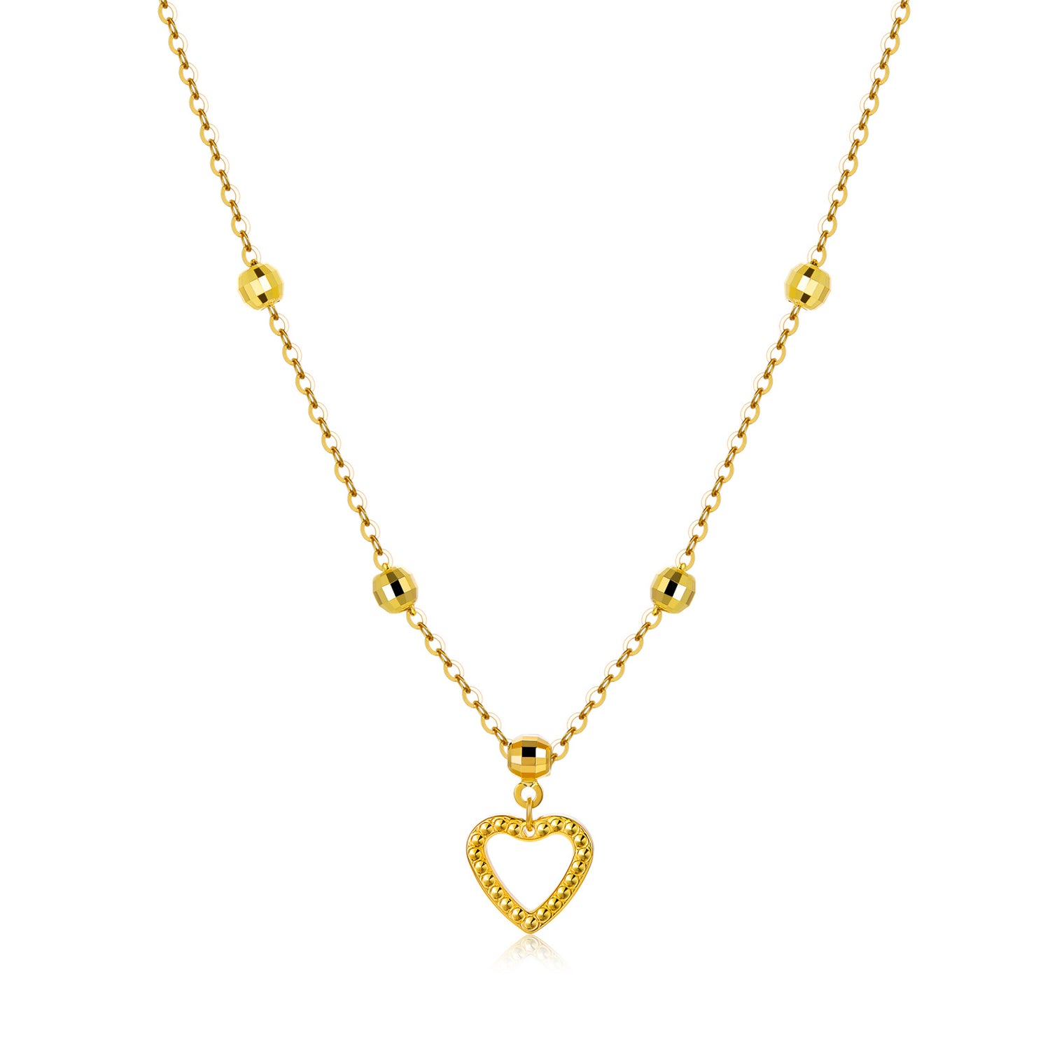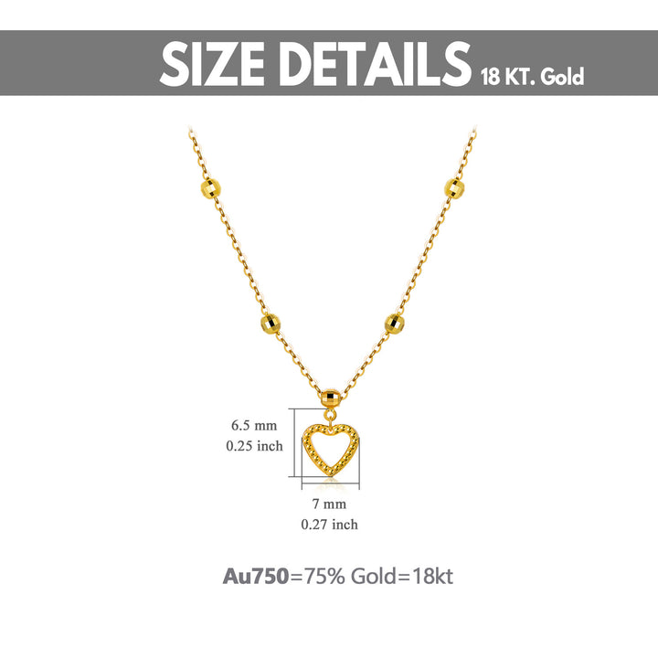 Crafted in 18K gold. Features heart pendant with bead accents. Stone-free design. Includes matching gold chain.