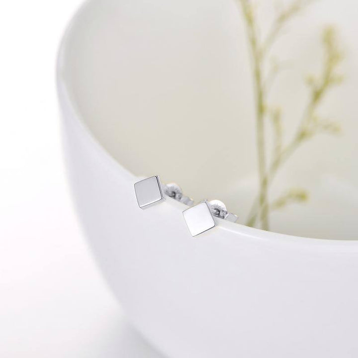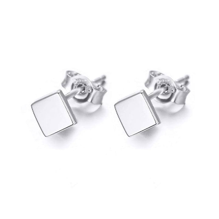 These no-stone Stud Earrings are Crafted with 18K White Gold Plating in a Classic Square Shape.