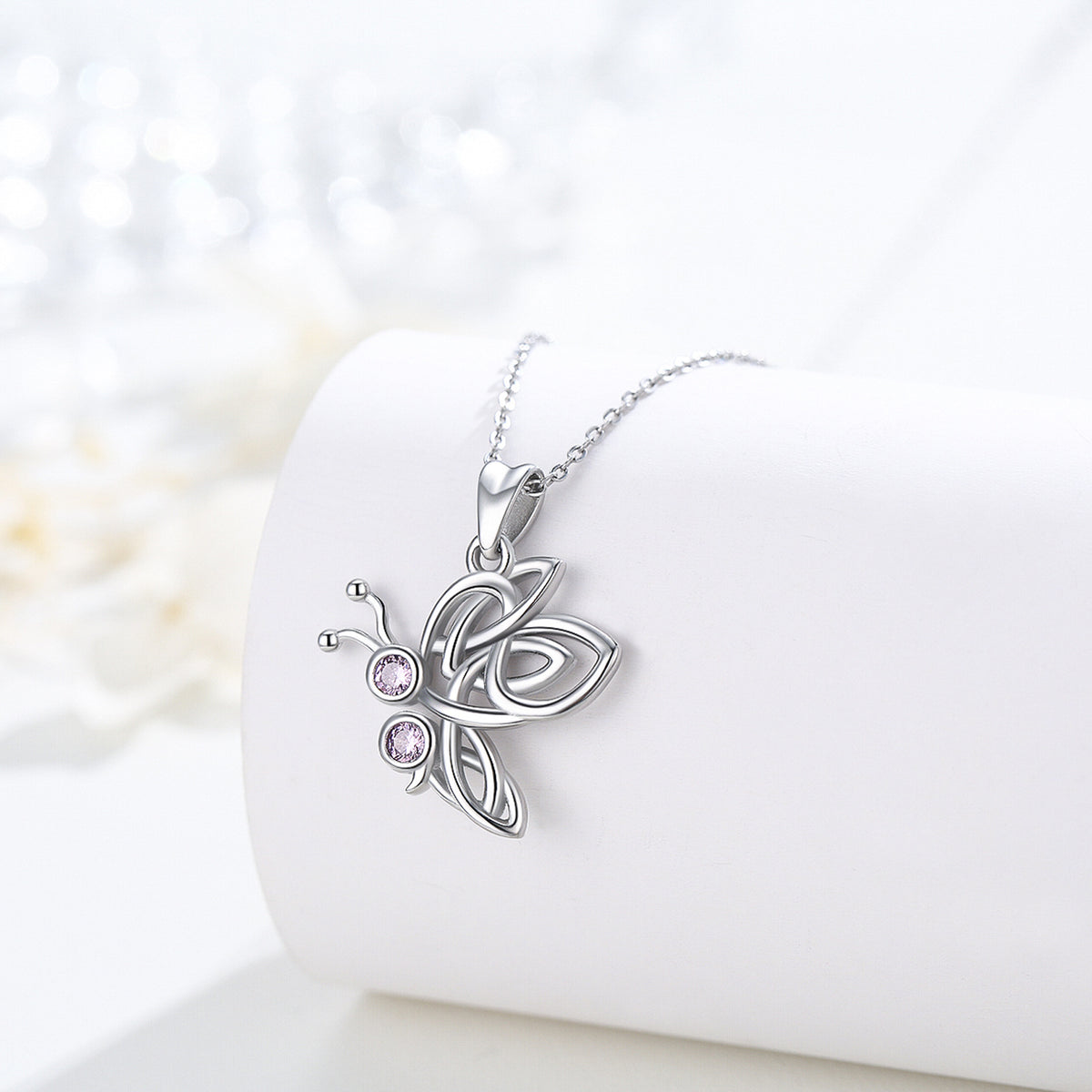 This Sterling Silver Circular Shaped Cubic Zirconia Butterfly Pendant Necklace by YFN evokes femininity, transformation, and gentle beauty through its enchanting butterfly motif set within a radiant circular frame. Pink cubic zirconia stones add vibrant sparkle, creating a captivating play of light that enhances the necklace’s delicate charm. White gold plating enriches the finish, giving the piece a luxurious glow. Perfect for women who adore whimsical elegance, this necklace adds a soft, romantic touch to any ensemble and makes a heartfelt gift symbolizing growth, hope, and new beginnings.