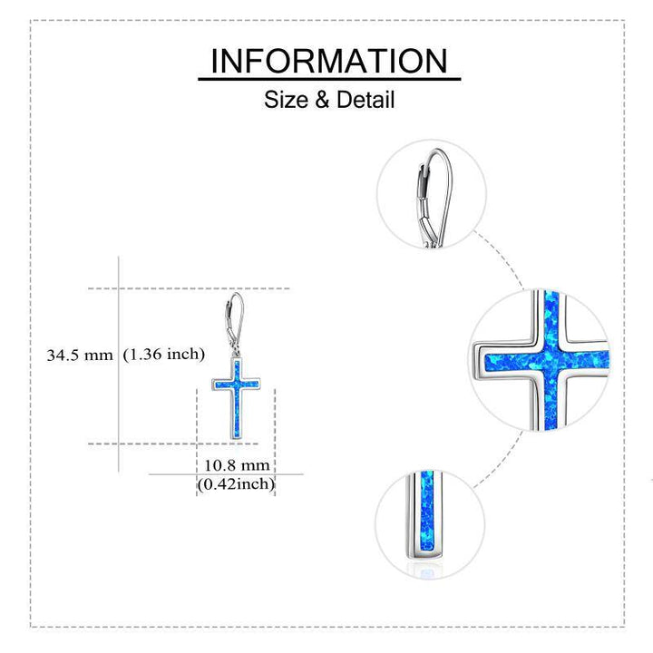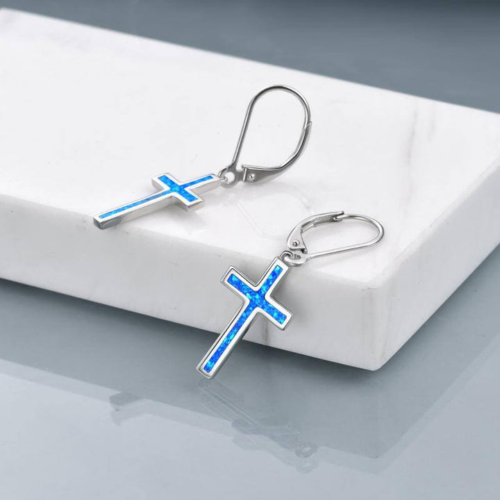 Sterling Silver Opal Cross Lever-back Earrings