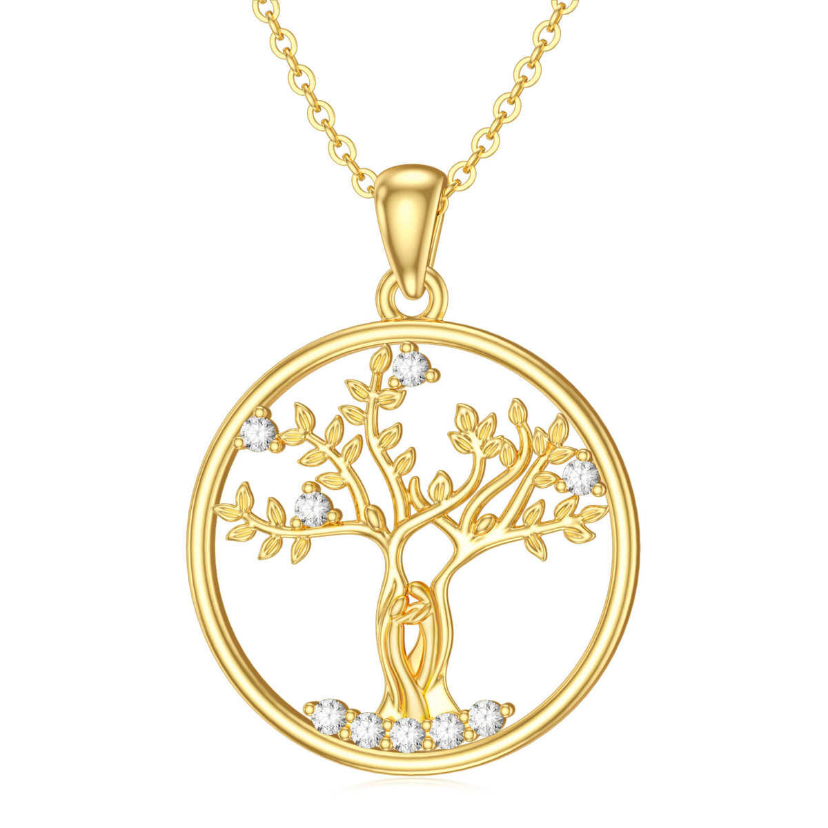 14K Gold Moissanite Sister Tree Of Life Pendant Necklace