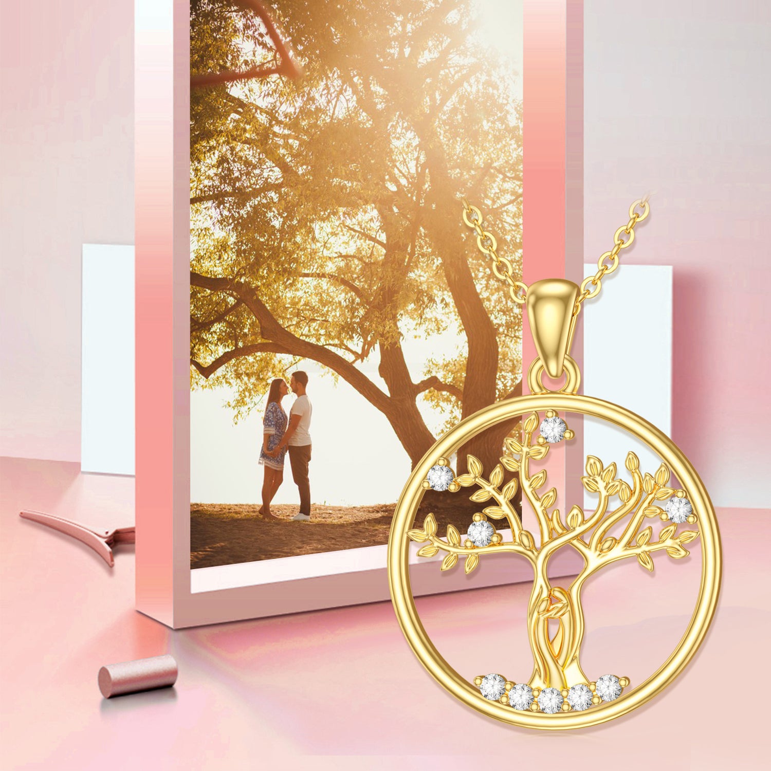 This Tree of Life Pendant Necklace is crafted from 14K Gold, Adorned with Dazzling Moissanite Stones.