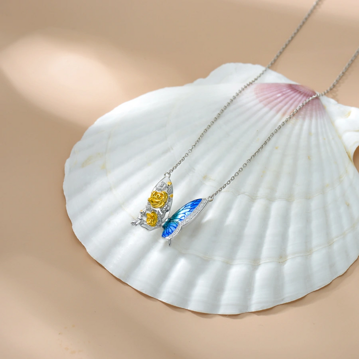 Sterling Silver Two-tone Butterfly & Rose Necklace for Women