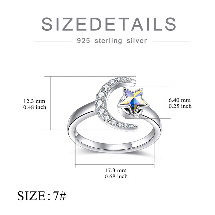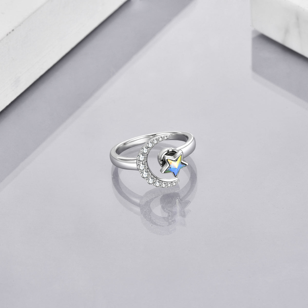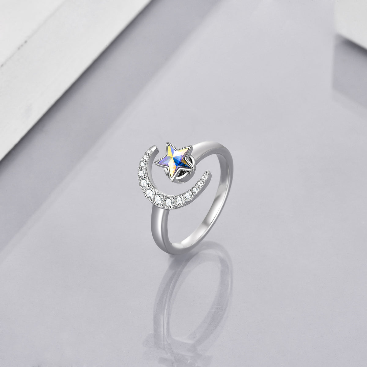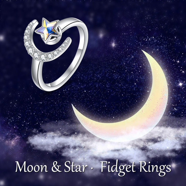 Sterling Silver Crescent Moon Sppinner Star Open Ring Anxiety Jewelry For Girl