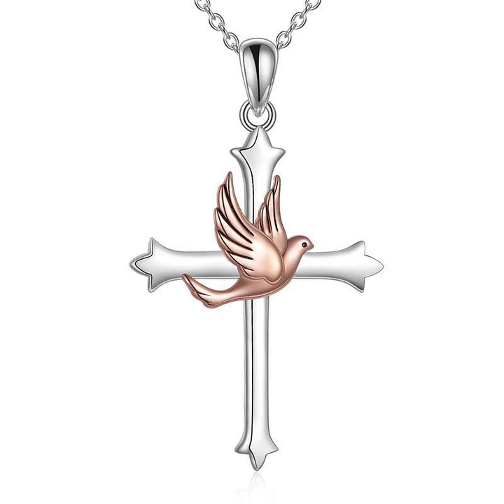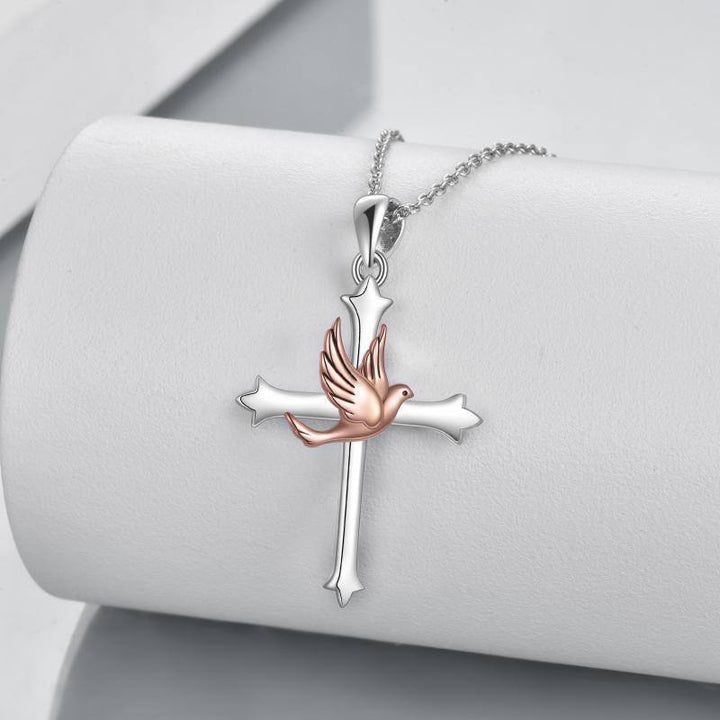 Sterling Silver Two-tone Bird & Cross Pendant Necklace
