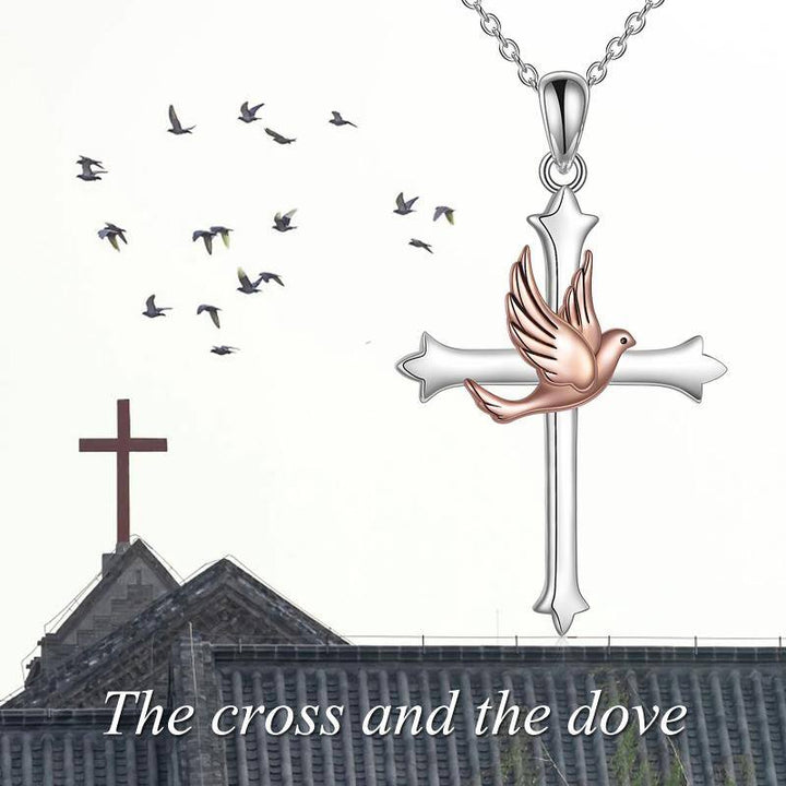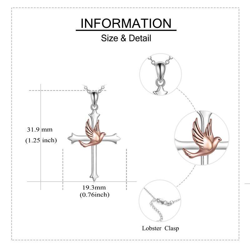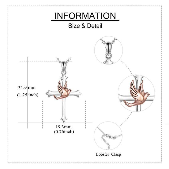 Crafted from high-quality Sterling Silver, this stone-free pendant features a Bird & Cross motif and is finished with Two-tone Silver and Rose Gold accents.