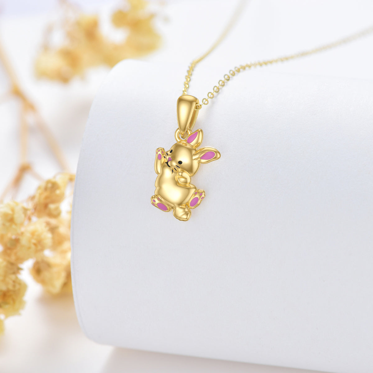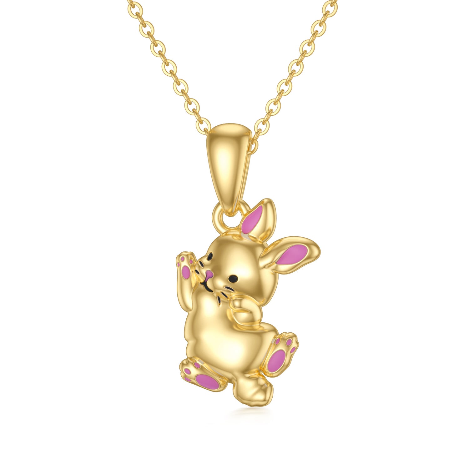 This 14K Gold Rabbit Pendant Necklace by YFN is a stone-free, whimsical yet sophisticated piece for women. Crafted from luxurious 14K gold, this no-stone necklace features a charming rabbit pendant, offering versatility and style for everyday wear or special occasions.
