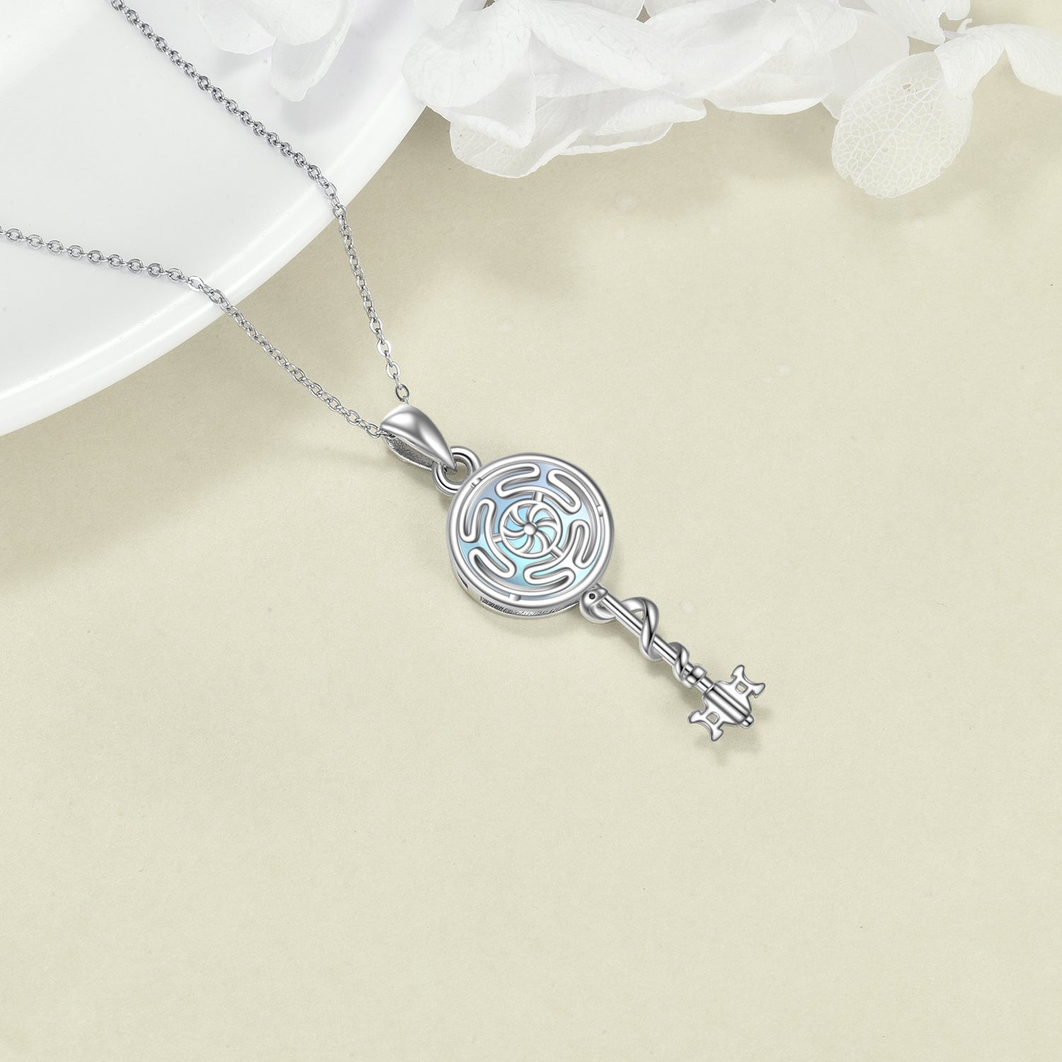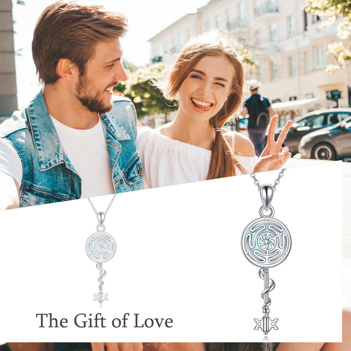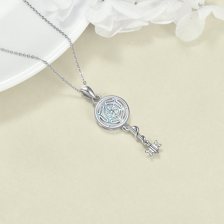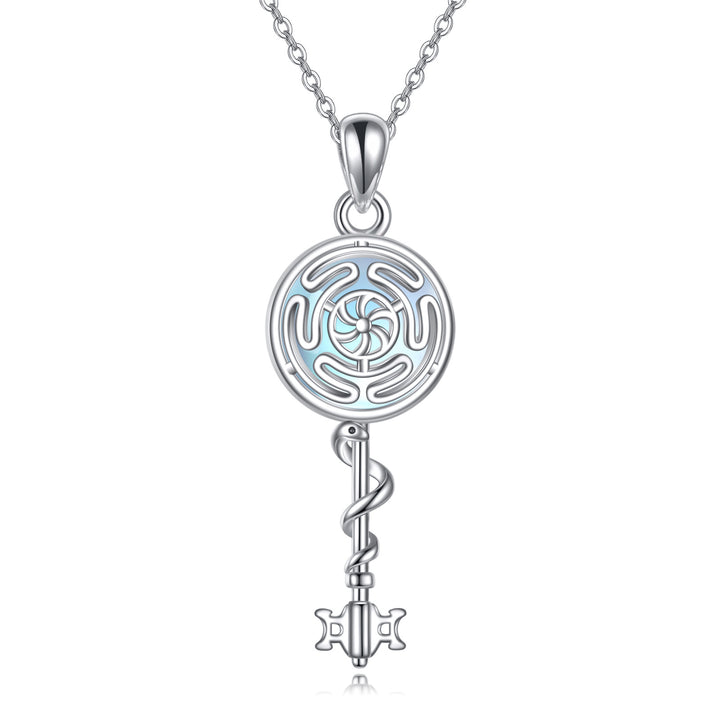 Sterling Silver Circular Shaped Moonstone Snake & Key Pendant Necklace