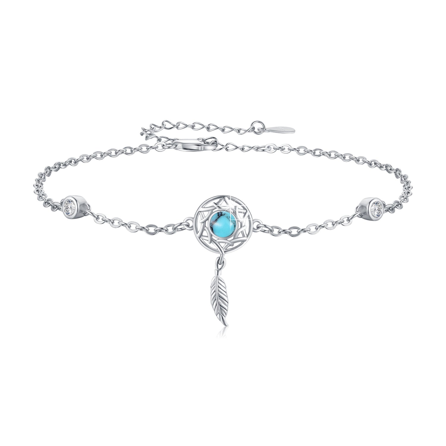 This Sterling Silver Cubic Zirconia & Turquoise Dream Catcher Charm Bracelet by YFN offers elegance and symbolic protection. Intricately plated with white gold, the sterling silver charm bracelet features a Dream Catcher motif, symbolizing positive energy. The inclusion of Turquoise stones and sparkling Cubic Zirconia makes it a durable, sophisticated, and meaningful accessory for females.