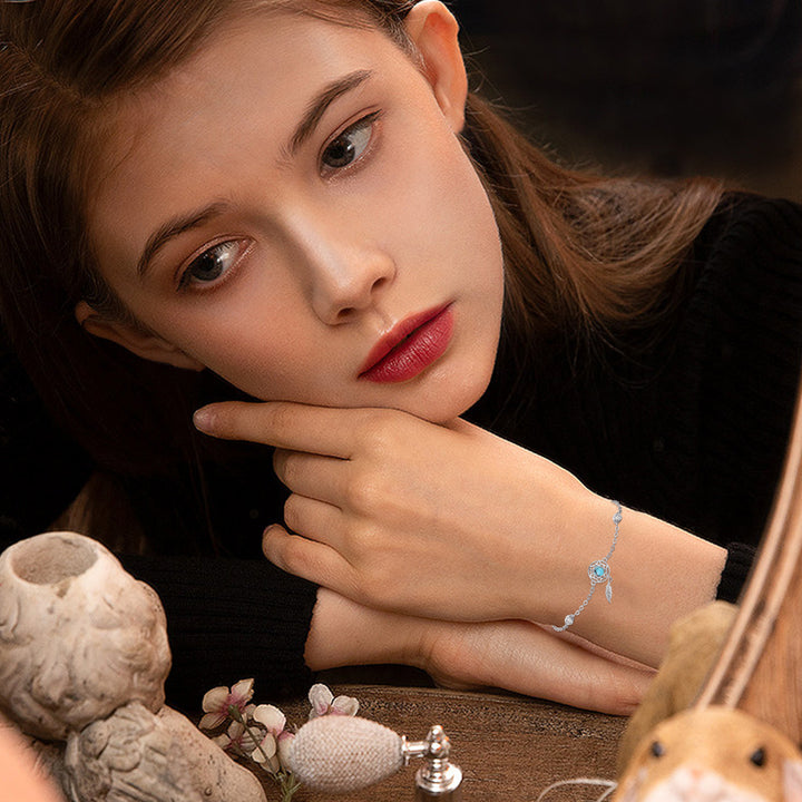 Sterling Silver Cubic Zirconia & Turquoise Dream Catcher Charm Bracelet